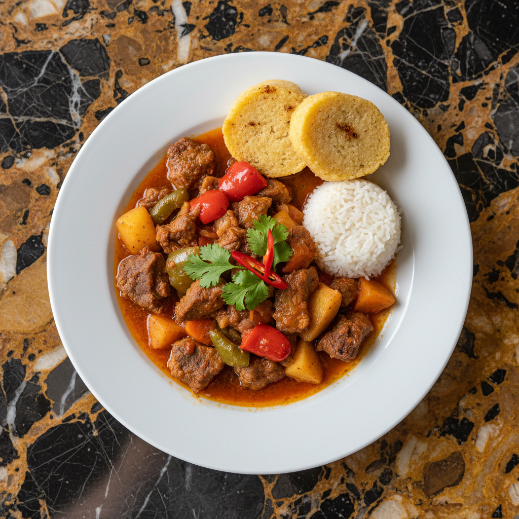 A hearty and flavorful goat stew, Caldeirada de Cabrito Angolana is a traditional dish often prepared for special occasions and celebrations, showcasing a rich blend of Angolan and Portuguese influences. It features tender goat meat slow-cooked with vegetables and a touch of spice.