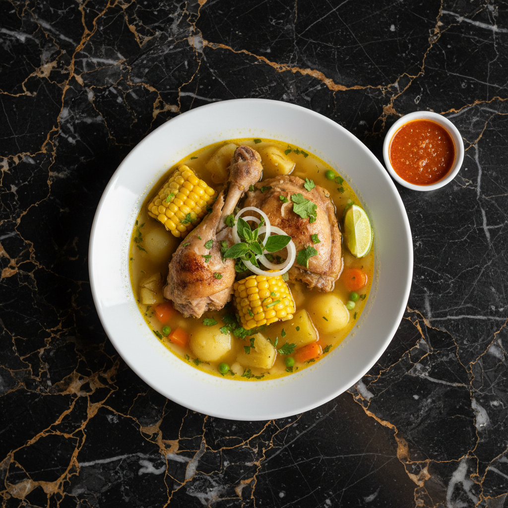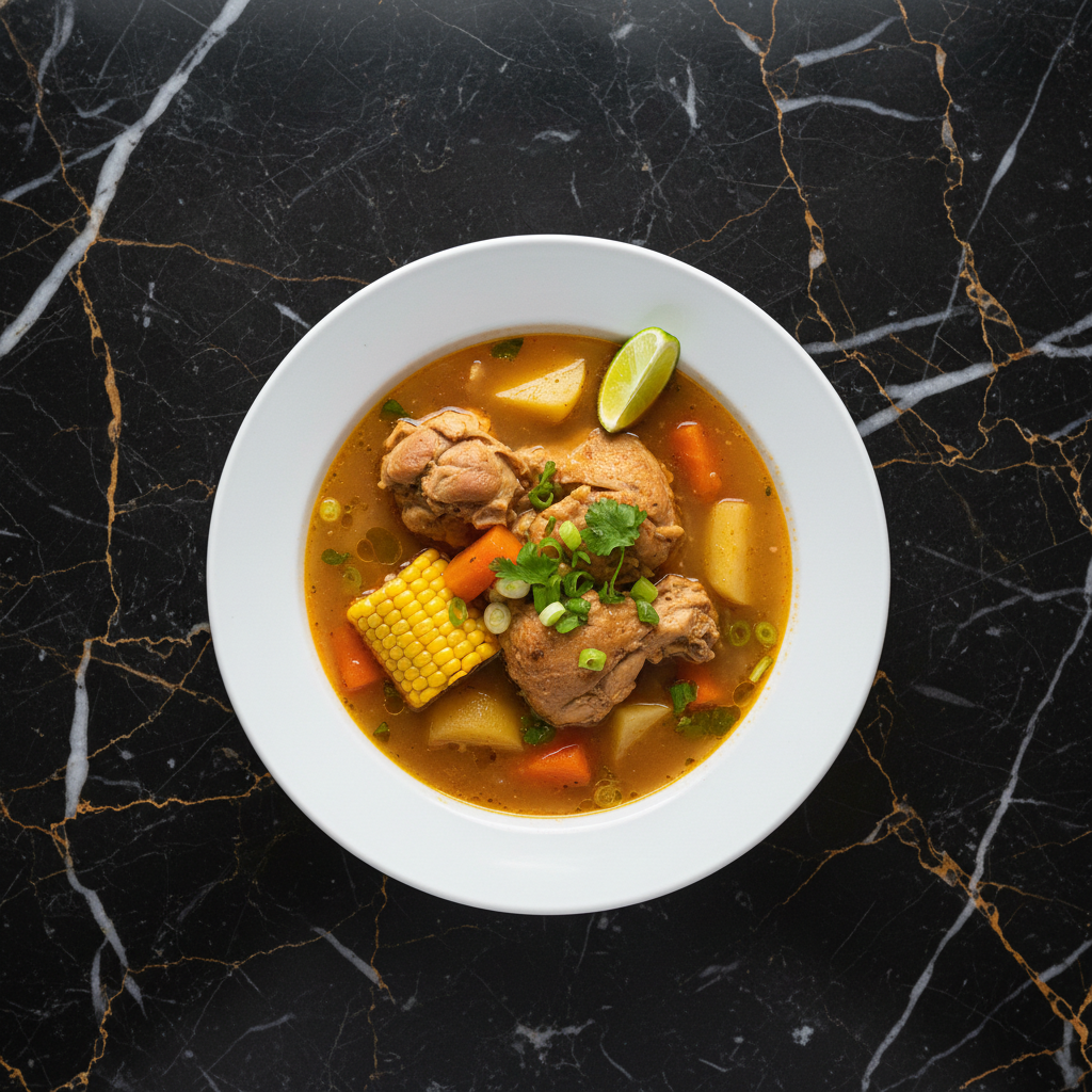 A hearty and comforting Cuban chicken soup, rich with vegetables and seasoned with traditional Cuban spices. It's a staple in many Cuban households, known for its restorative qualities.