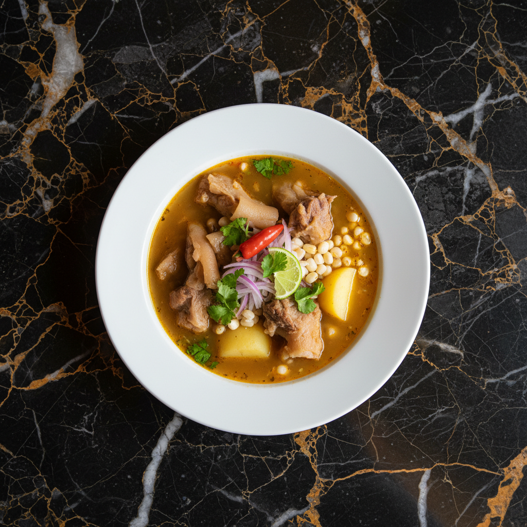 A hearty and flavorful soup made from cow's feet, typically enjoyed for its rich broth and tender meat. It's considered a restorative dish and a delicacy in many parts of Ecuador.