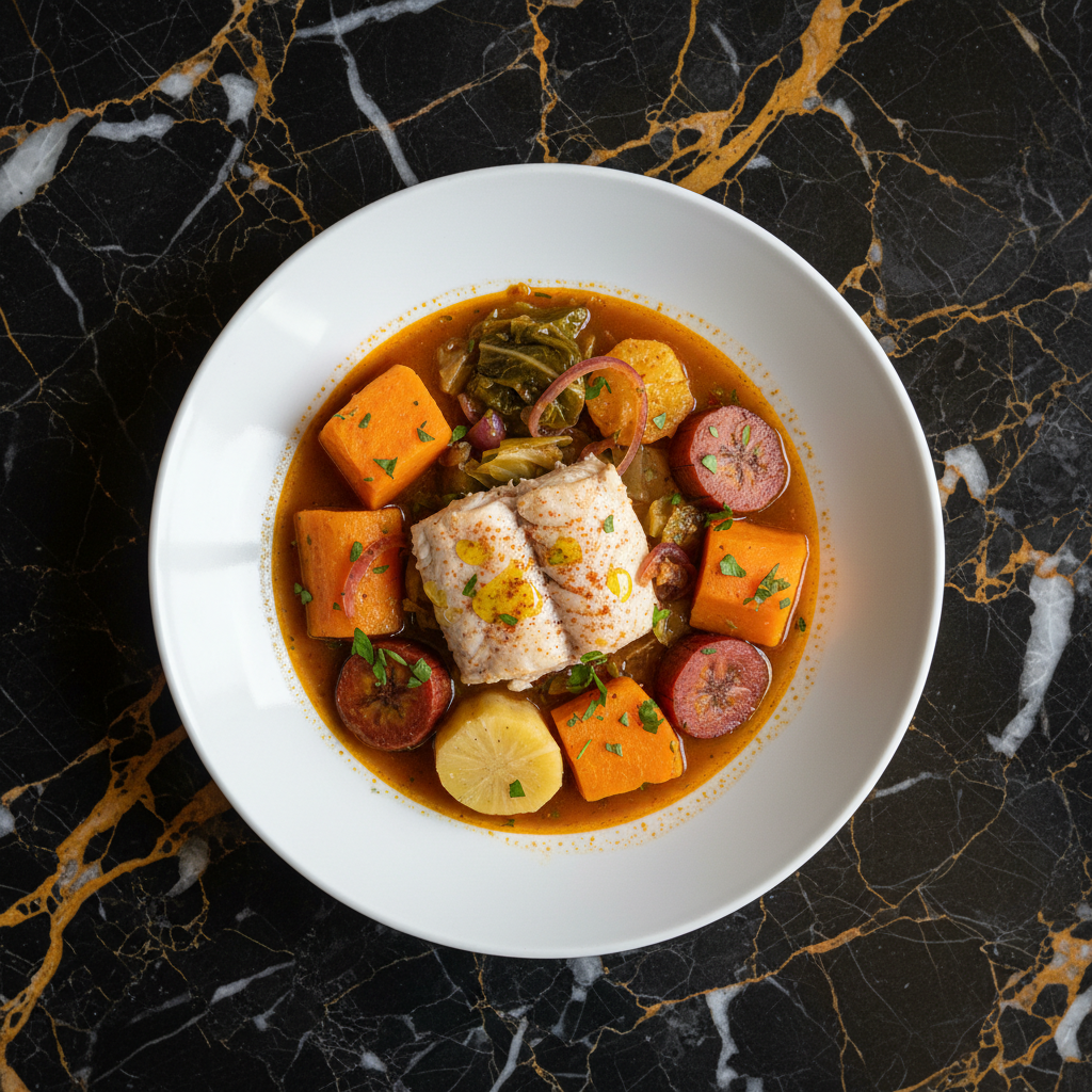 A hearty and flavorful Cape Verdean fish stew, Caldo de Peixe combines tender chunks of white fish with a medley of root vegetables and aromatic seasonings in a rich, savory broth. It's a comforting and nutritious dish, showcasing the islands' fresh seafood and produce.