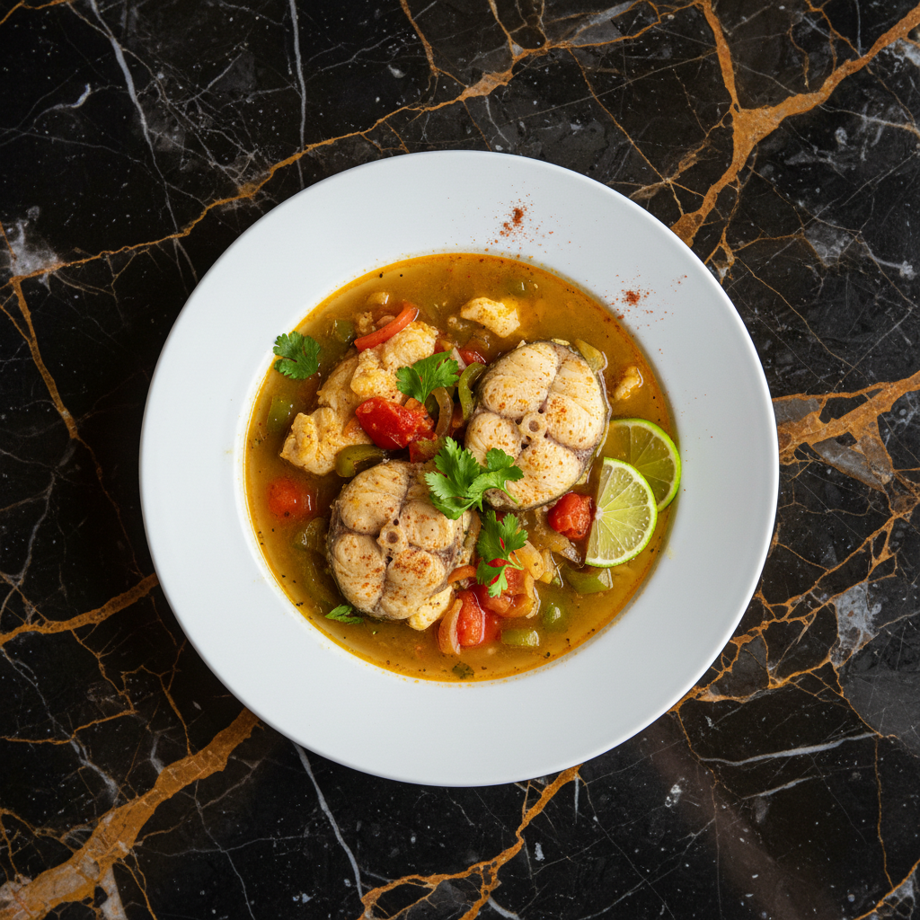 A hearty and flavorful fish soup, often made with a variety of fresh fish and vegetables, seasoned with local herbs and spices. It's a comforting dish popular in coastal regions.