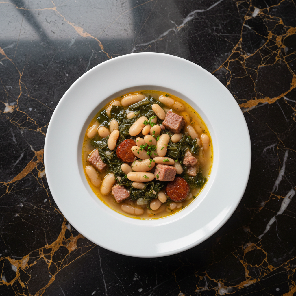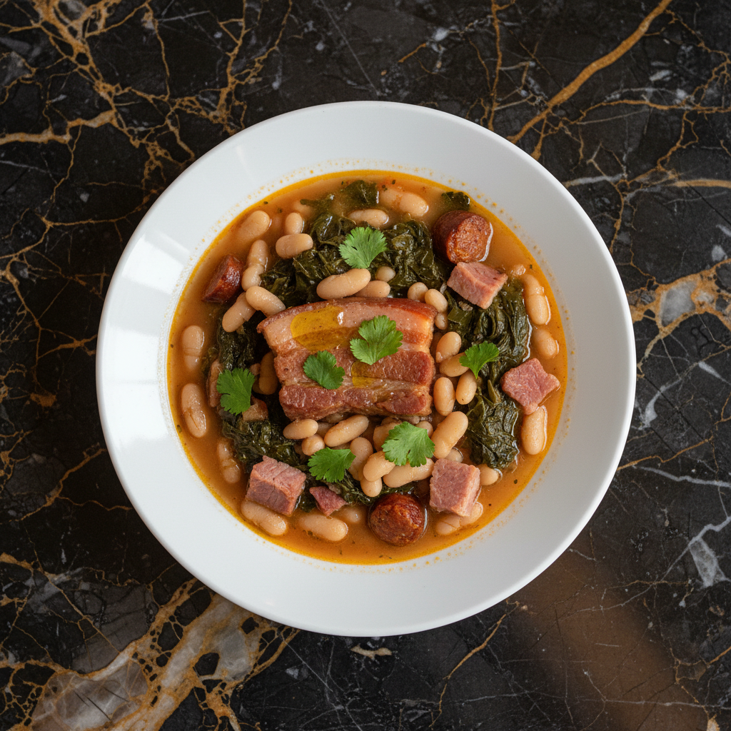 A hearty and flavorful Cuban adaptation of the traditional Galician soup, featuring tender white beans, collard greens, and savory pork.