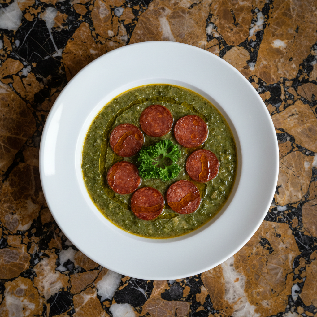 A hearty and comforting national soup of Portugal, featuring tender potatoes, finely shredded kale, and smoky chouriço sausage. This traditional recipe is simple to make and incredibly satisfying.