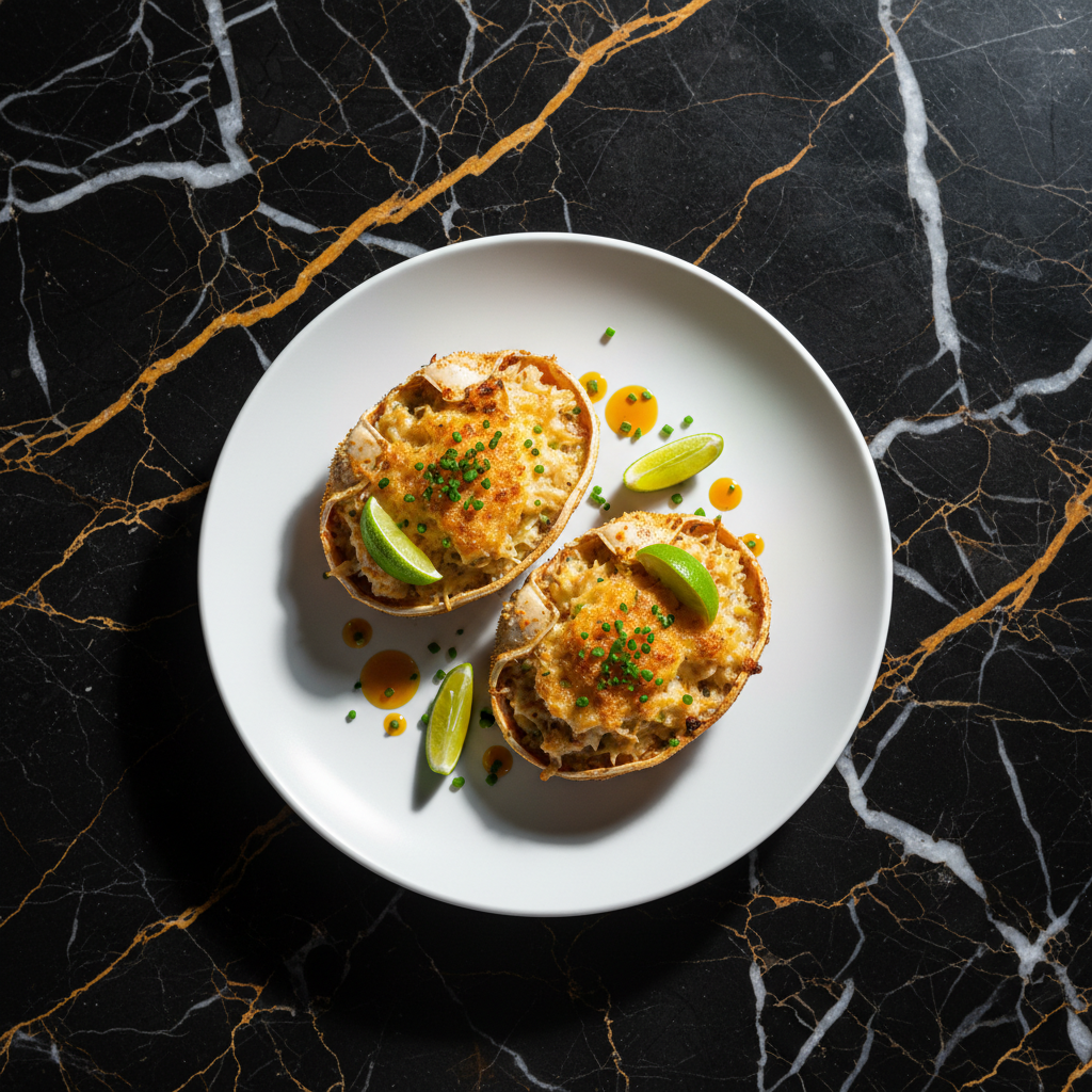 A classic Brazilian beach bar delicacy, this dish features tender crab meat mixed with aromatic vegetables and creamy coconut milk, baked in crab shells (or ramekins) until golden and bubbly. It's a flavorful and comforting seafood gratin.