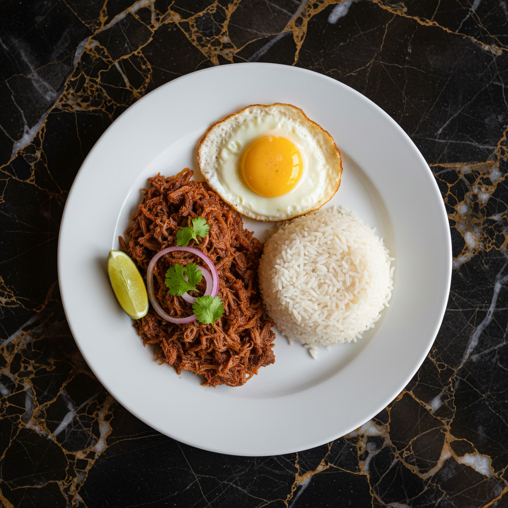 A hearty and flavorful Nicaraguan staple, this dish features tender shredded beef (carne desmenuzada) served alongside fluffy white rice and fried eggs. It's a comforting and satisfying meal often enjoyed for breakfast or lunch.