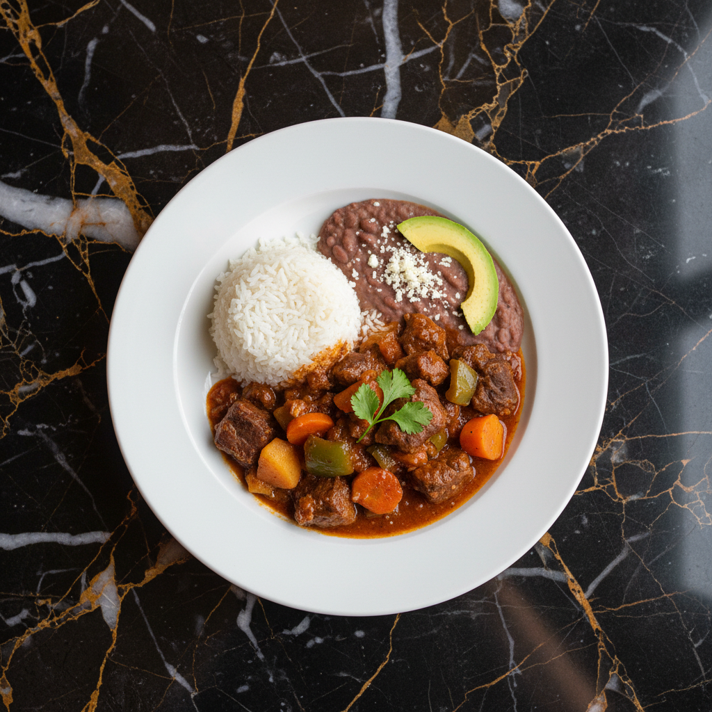 A savory and tender Honduran-style beef stew, slow-cooked in a rich, aromatic sauce with vegetables. This dish is a staple in Honduran homes, often served with rice and beans.