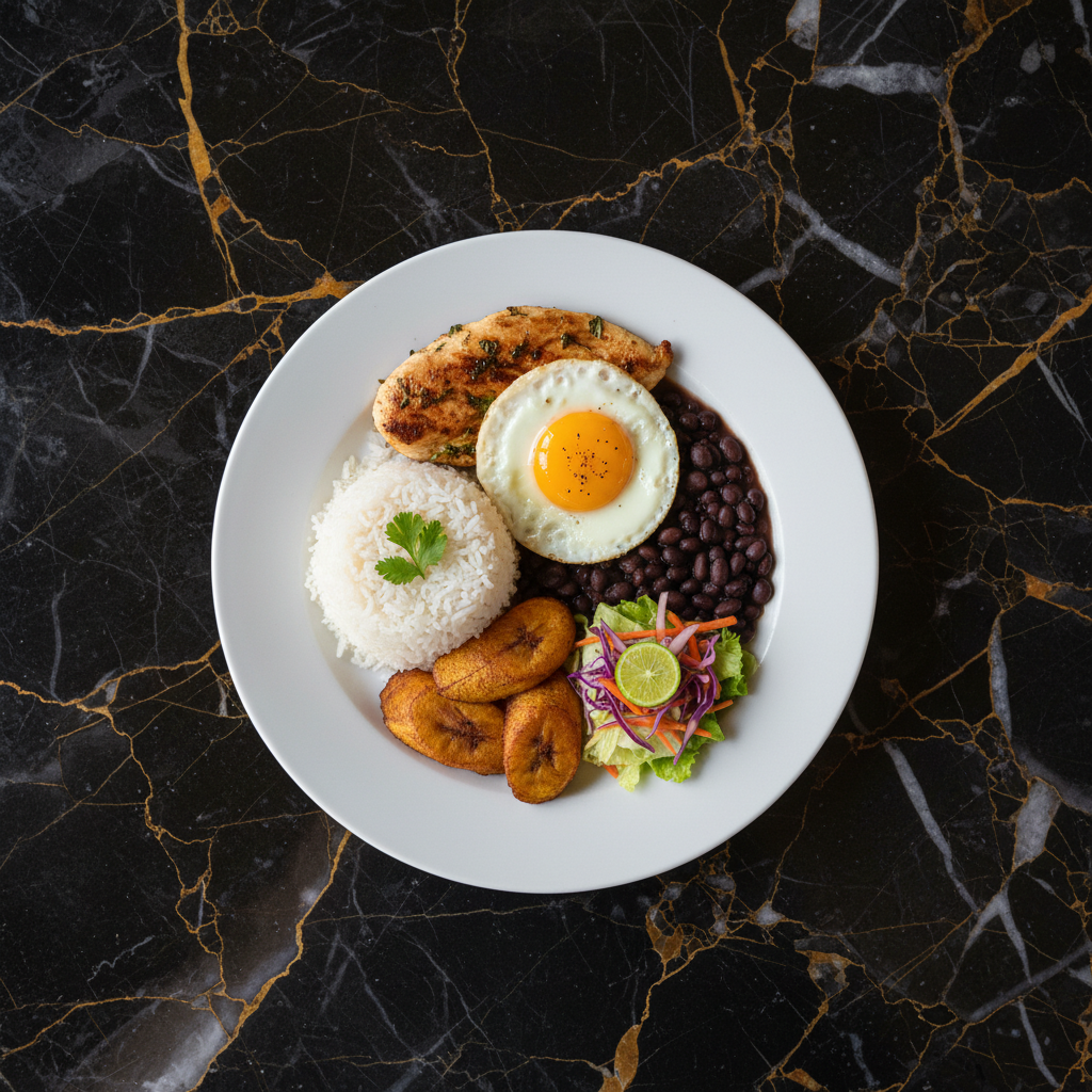 A traditional and hearty Costa Rican meal, the Casado is a plate that typically includes rice, black beans, a protein (like fish, chicken, or beef), fried plantains, salad, and a fried egg. It's a complete and balanced meal, often considered a national dish.