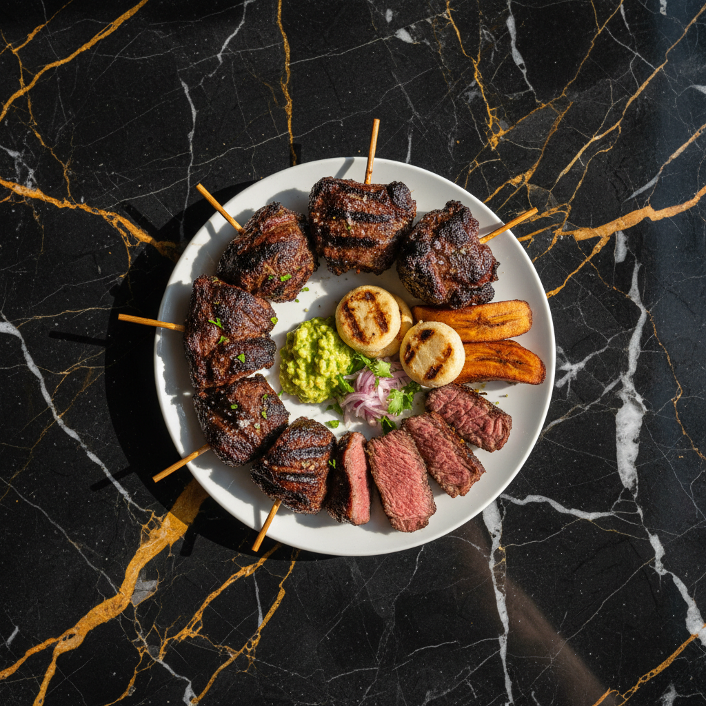 A traditional Venezuelan dish from the Llanos region, featuring a large cut of beef slowly roasted on a wooden stake over an open wood fire. This method imparts a unique smoky flavor and tender texture to the meat.