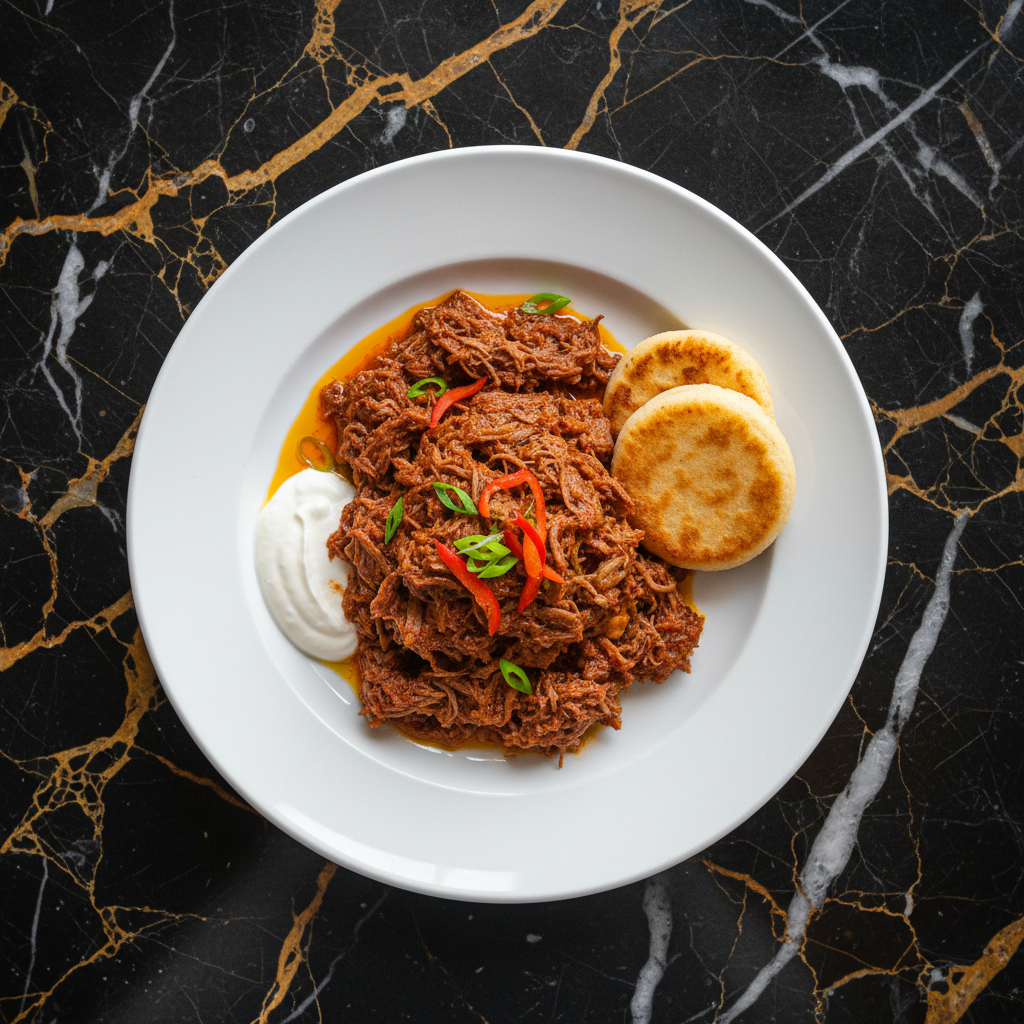 A classic Venezuelan shredded beef dish, simmered in a rich tomato-based sauce, perfect for stuffing into warm arepas or as a component of Pabellón Criollo.