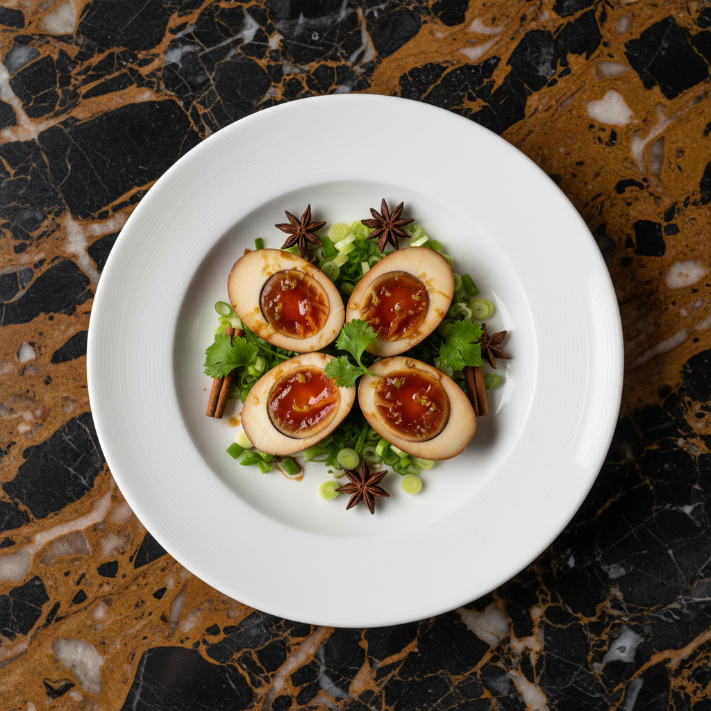 Chinese tea eggs, known as Cha Ye Dan, are a popular and visually striking snack sold on street corners throughout China. Hard-boiled eggs are gently cracked and then simmered in a fragrant broth of black tea, soy sauce, and aromatic spices. This process infuses the eggs with a savory, complex flavor and creates a beautiful, marbled pattern on the whites as the seasoned liquid seeps into the cracks.