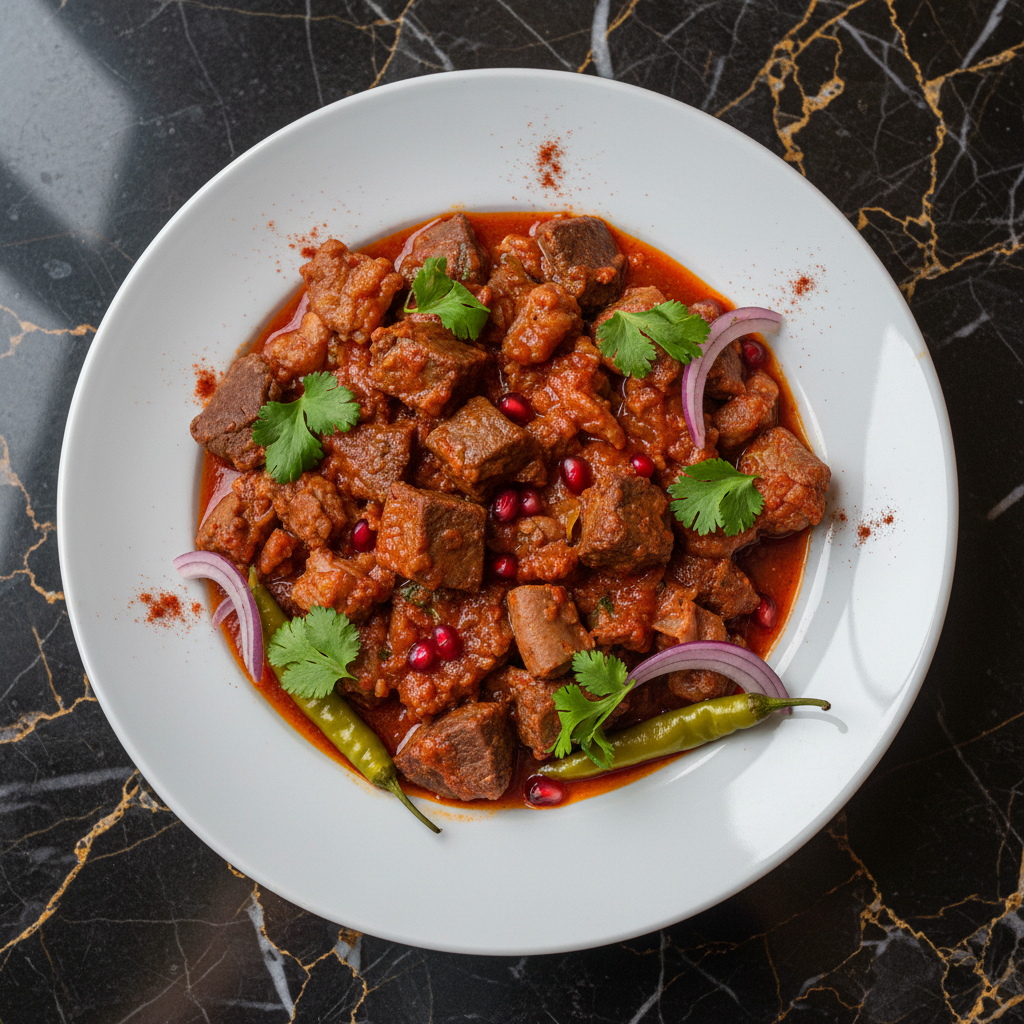A hearty and flavorful dish combining the slow-cooked, tomato-based beef stew of Chashushuli with the rich, spiced offal preparation of Kuchmachi. This unique fusion offers a complex taste profile with tender beef and savory organ meats, seasoned with traditional Georgian spices.