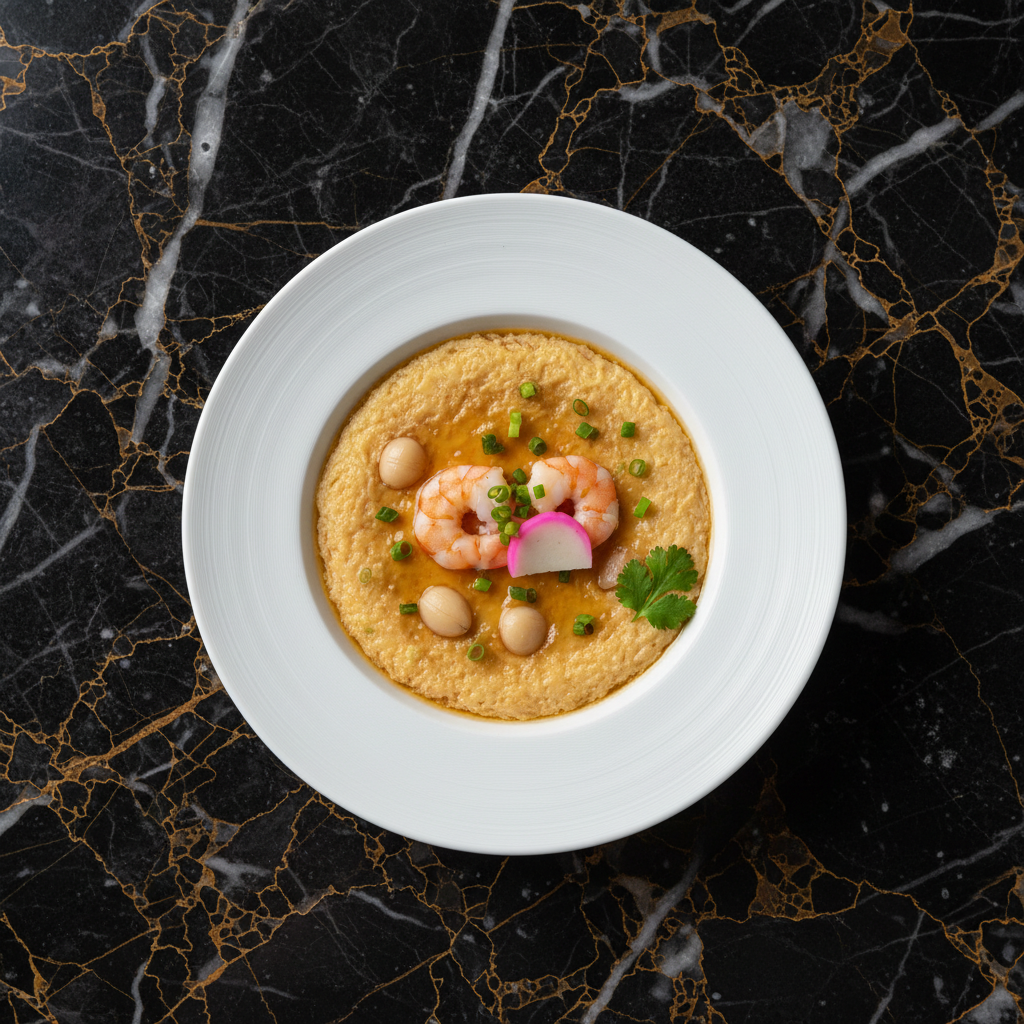 A delicate and silky steamed egg custard, traditionally served as an elegant appetizer or side dish. This version features tender shrimp and chicken, with the option of ginkgo nuts for an authentic touch.