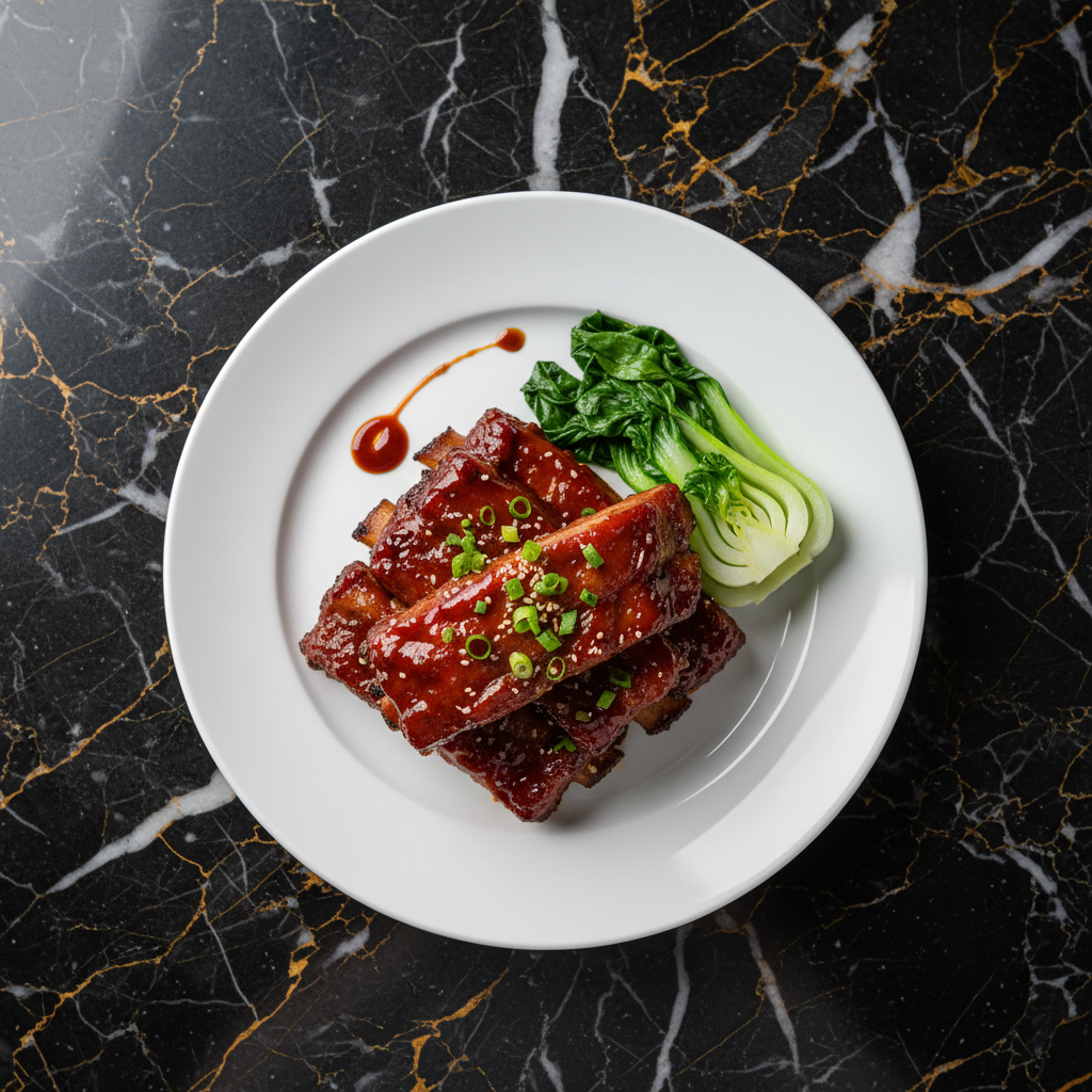 Tender and succulent Cantonese-style BBQ pork spare ribs, coated in a rich, sweet, and savory char siu glaze. The result is beautifully lacquered ribs with a perfect balance of flavors and a hint of smoky char.
