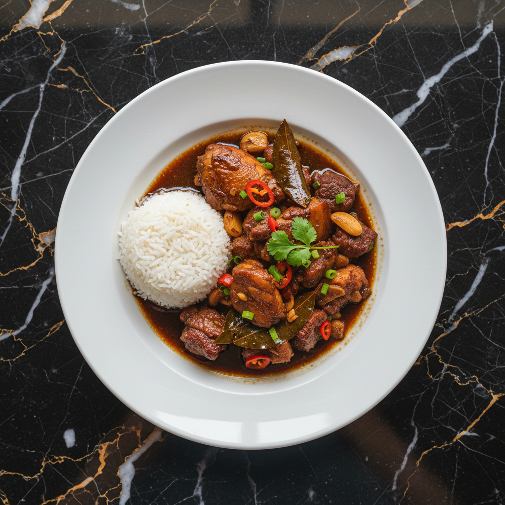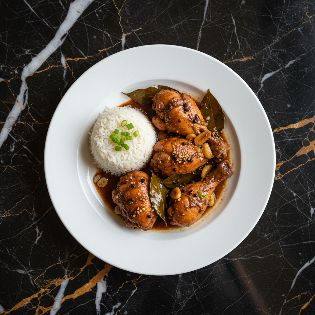 The Philippines' national dish - chicken braised in a tangy, savory, and deeply satisfying sauce of vinegar, soy sauce, garlic, and bay leaves. This recipe offers a classic approach to this beloved Filipino comfort food.