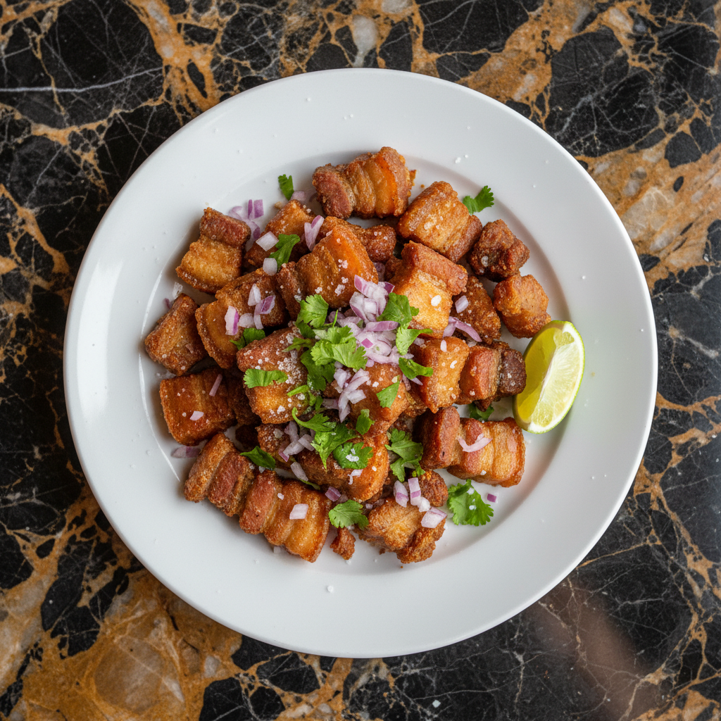 Crispy, succulent pork belly pieces, seasoned and slow-cooked until tender, then fried to a perfect crunch. A beloved savory snack and appetizer.