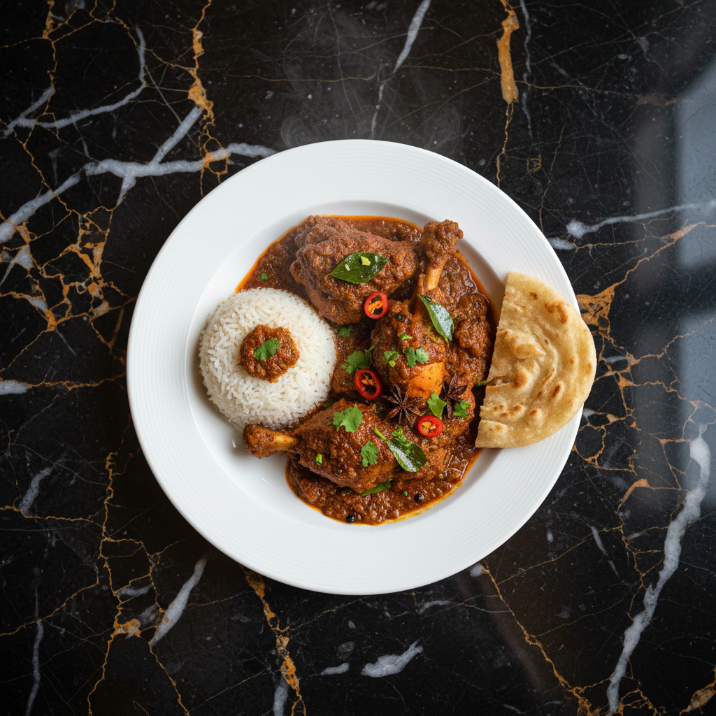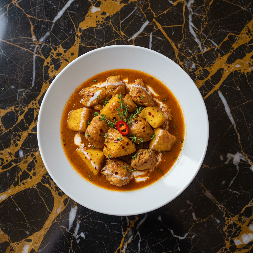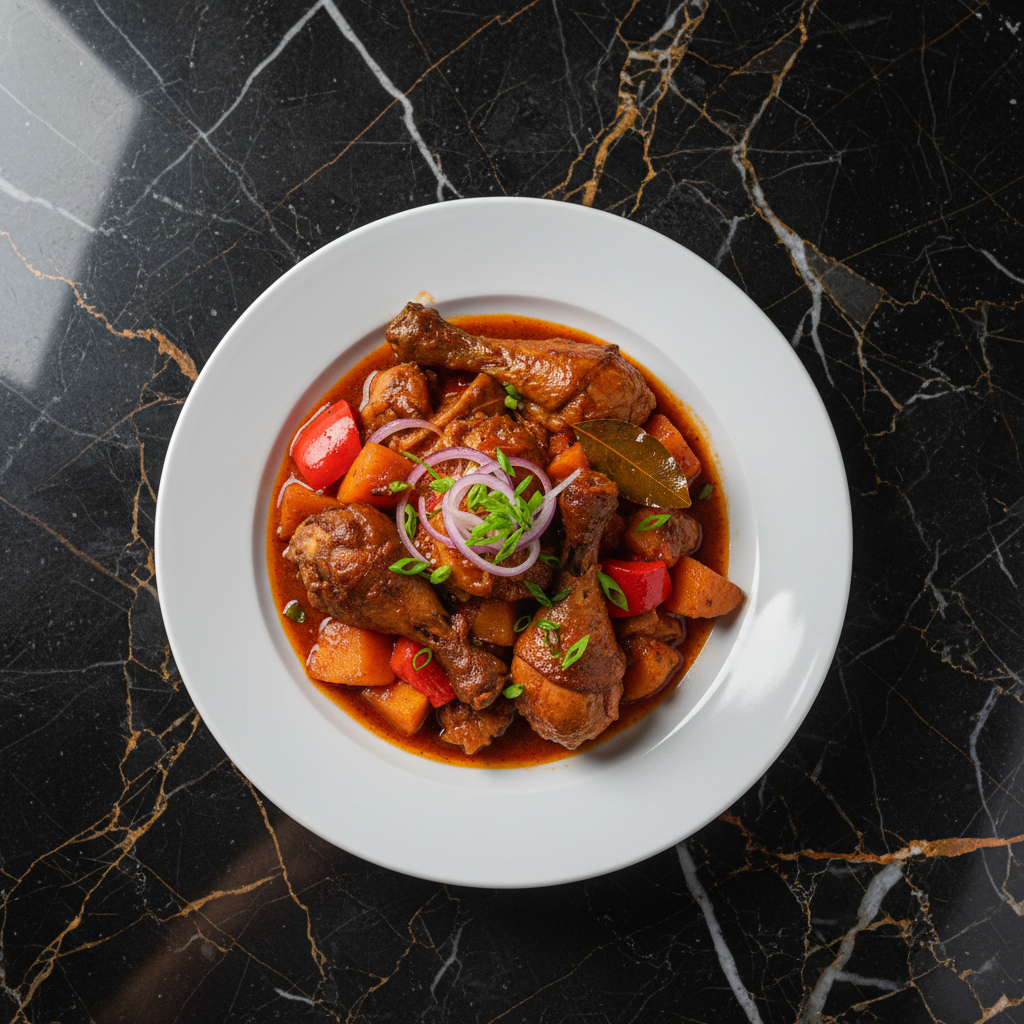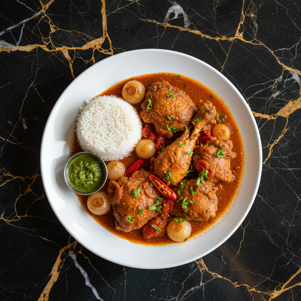 A rich and flavorful Mauritian chicken stew, slow-cooked with aromatic spices, tomatoes, onions, and garlic, often with a hint of chili. It's a comforting dish that showcases the island's diverse culinary influences.