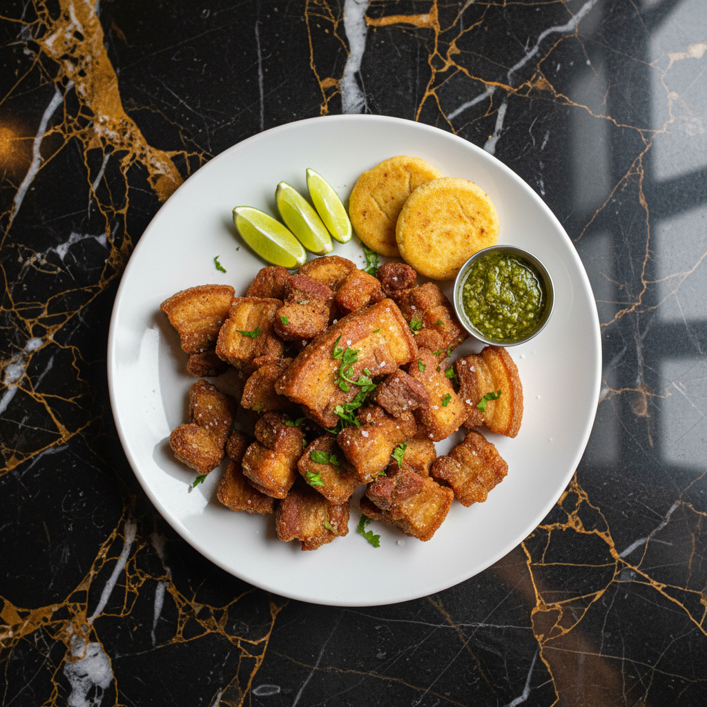 A classic Colombian delicacy, this pork belly is slow-cooked and then fried to achieve an incredibly crispy skin and tender, succulent meat. It's a staple in many Colombian dishes, especially Bandeja Paisa.