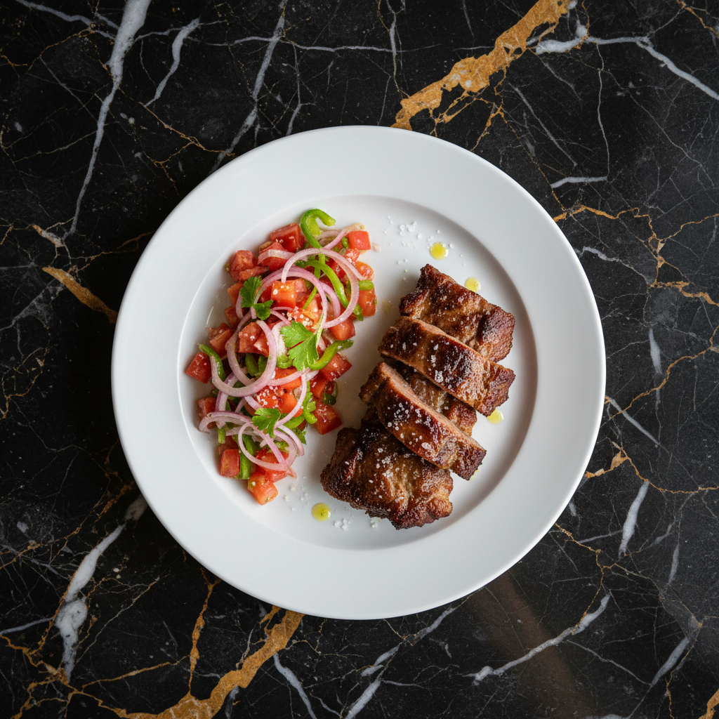 A vibrant and refreshing Argentine salad, typically served as a side dish with grilled meats (asado). It features thinly sliced tomatoes, onions, and bell peppers dressed in a simple vinaigrette. The key is the freshness and balance of flavors.