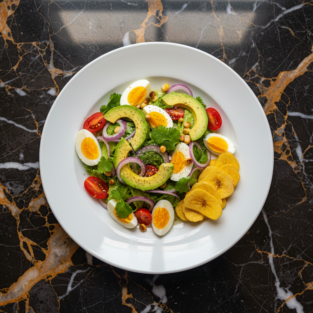 A vibrant and refreshing Colombian salad, featuring crisp lettuce, ripe tomatoes, creamy avocado, and a zesty lime dressing. It's a simple yet flavorful side dish perfect for any meal.