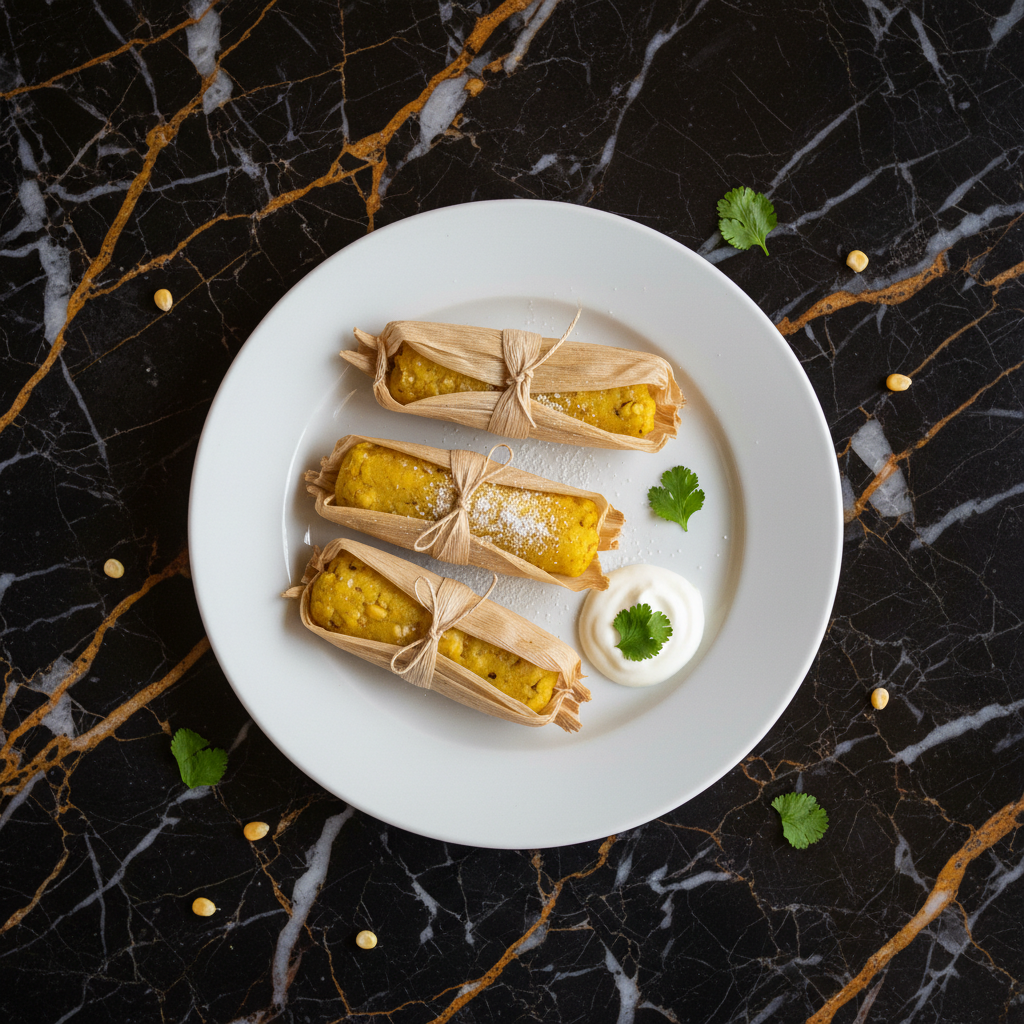 Sweet and tender corn dough, seasoned with sugar and butter, then wrapped in corn husks and steamed to perfection. These are a delightful traditional Colombian treat, often enjoyed for breakfast or as a snack.