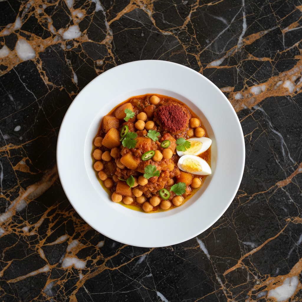 A hearty and flavorful vegetarian stew featuring tender potatoes and chickpeas simmered in a rich, spiced tomato-based broth. This dish is a comforting staple, often enjoyed during fasting periods or as a wholesome everyday meal.