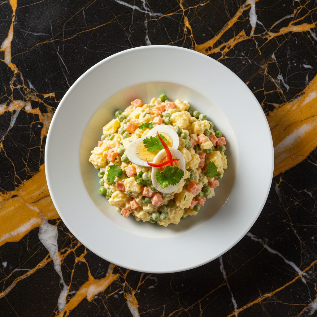 A classic Argentine potato salad, Ensalada Rusa is a comforting and flavorful side dish featuring finely diced vegetables bound together with creamy mayonnaise. Perfect for barbecues and family gatherings.