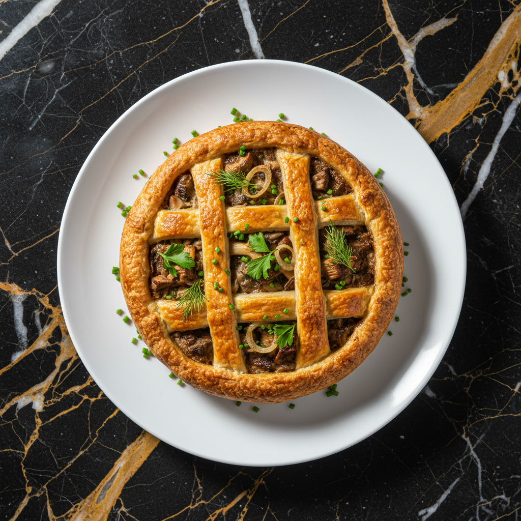 A savory pie featuring the earthy flavors of Estonian forest mushrooms, encased in a flaky pastry. This dish celebrates the country's rich mushroom-picking traditions, often incorporating a creamy filling with onions and herbs.
