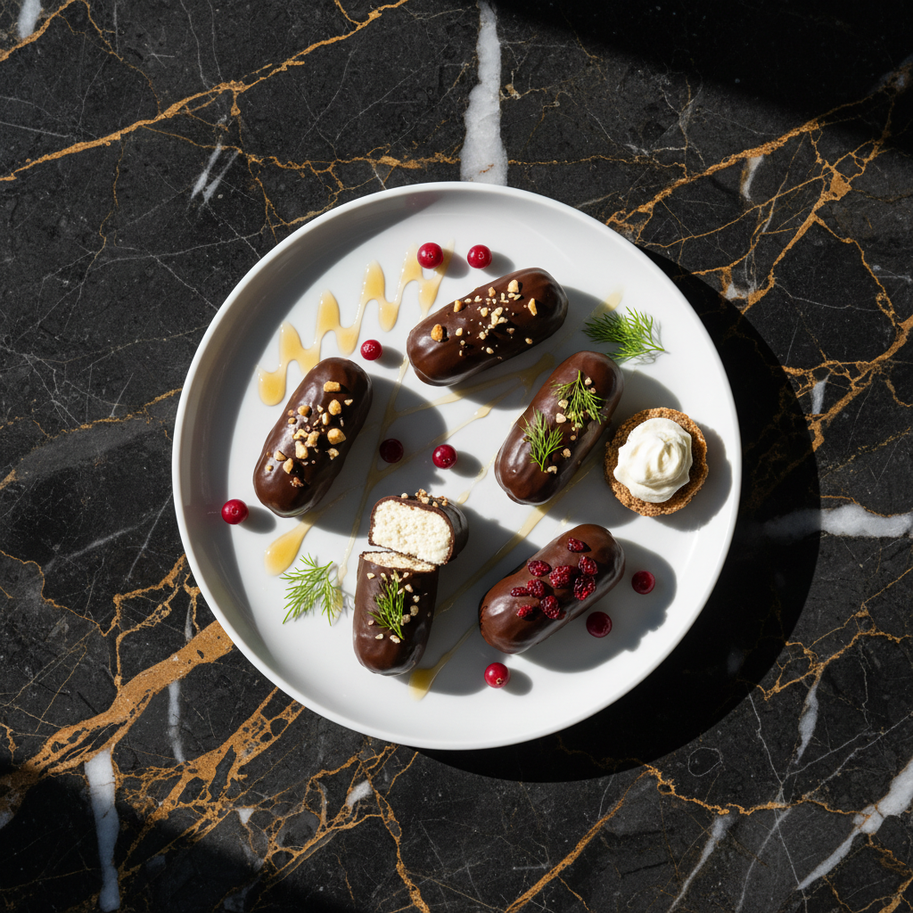 Kohuke is a popular Estonian sweet snack made from fresh curd cheese (kohupiim) formed into bars or balls and coated in chocolate. It's a simple yet delicious treat, often enjoyed for breakfast or as a dessert.