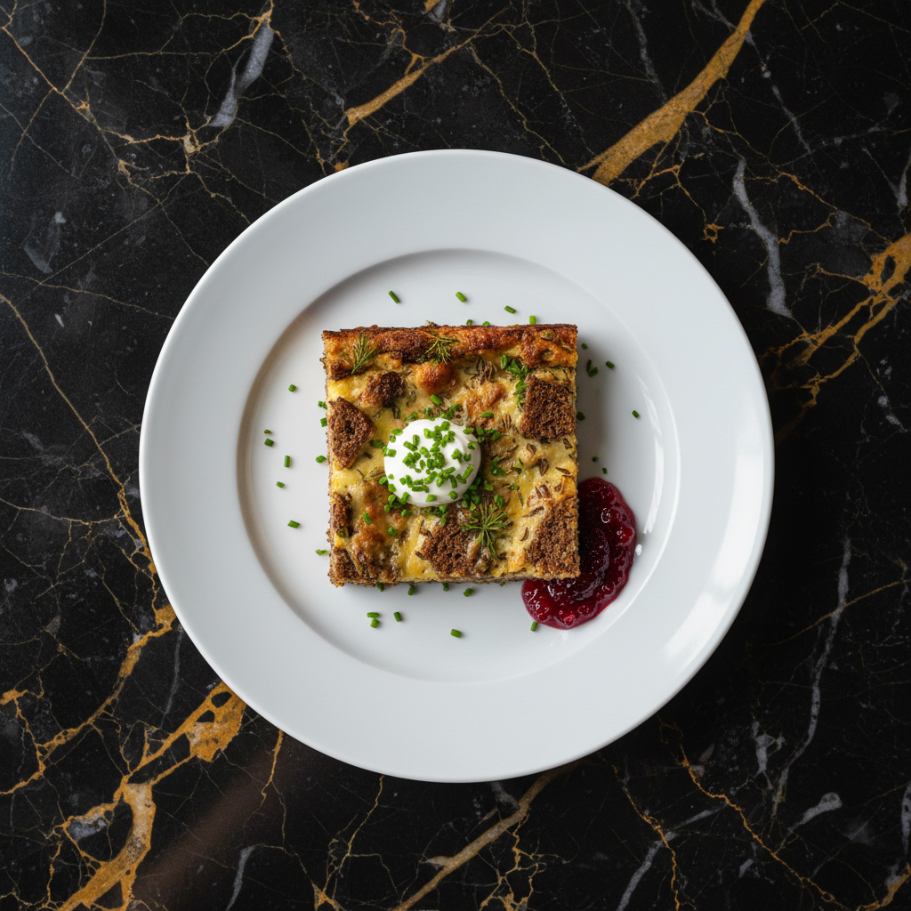 A comforting and flavorful savory bread pudding made with traditional Estonian rye bread, enriched with cheese and herbs. This dish is a wonderful way to use up stale bread and can be served as a side dish or a light main course.