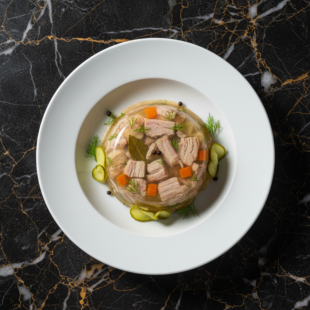 Sรผlt is a traditional Estonian dish of savory meat jelly, often made from pork trotters, hocks, and other gelatinous cuts of pork, simmered for hours until tender. It's a classic appetizer or main course, especially popular during holidays.
