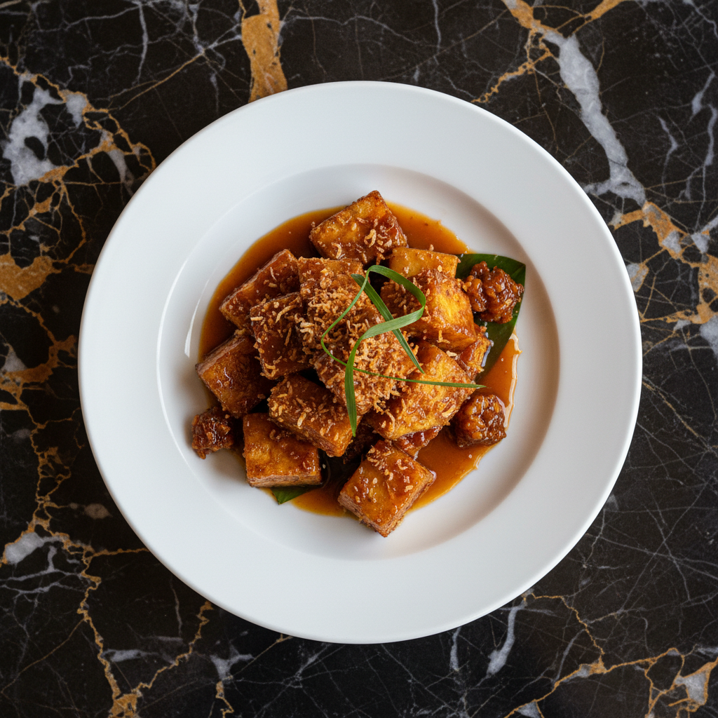 A rich and sweet Samoan delicacy featuring cubes of baked taro or a simple flour-based bread, generously coated in a luscious coconut caramel sauce. Traditionally baked in an umu, it can also be made in a conventional oven.