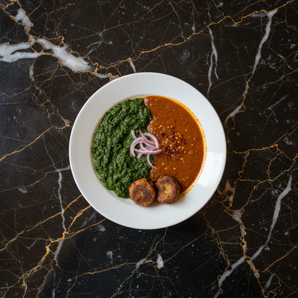 A traditional Nigerian soup made from jute leaves (Ewedu), known for its slimy texture and rich, earthy flavor. Often served with Gbegiri (beans soup) and Amala.