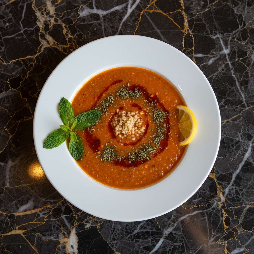 Ezogelin รorbasฤฑ, often called 'Bride's Soup,' is a comforting and flavorful Turkish red lentil soup. It features a delightful blend of red lentils, bulgur, and rice, seasoned with mint and a hint of spice. This soup is named after Ezo, a bride whose exquisite soup recipe became legendary.