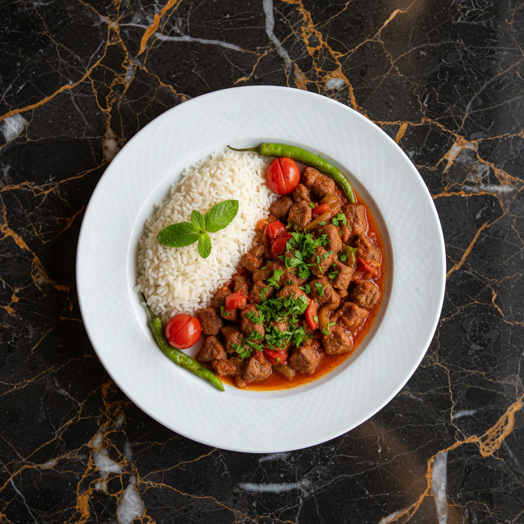 A classic Turkish comfort food, Et Sote features tender cubes of beef sautรฉed with vibrant bell peppers and juicy tomatoes in a rich, savory tomato-based sauce. This dish is known for its simplicity and deeply satisfying flavors.