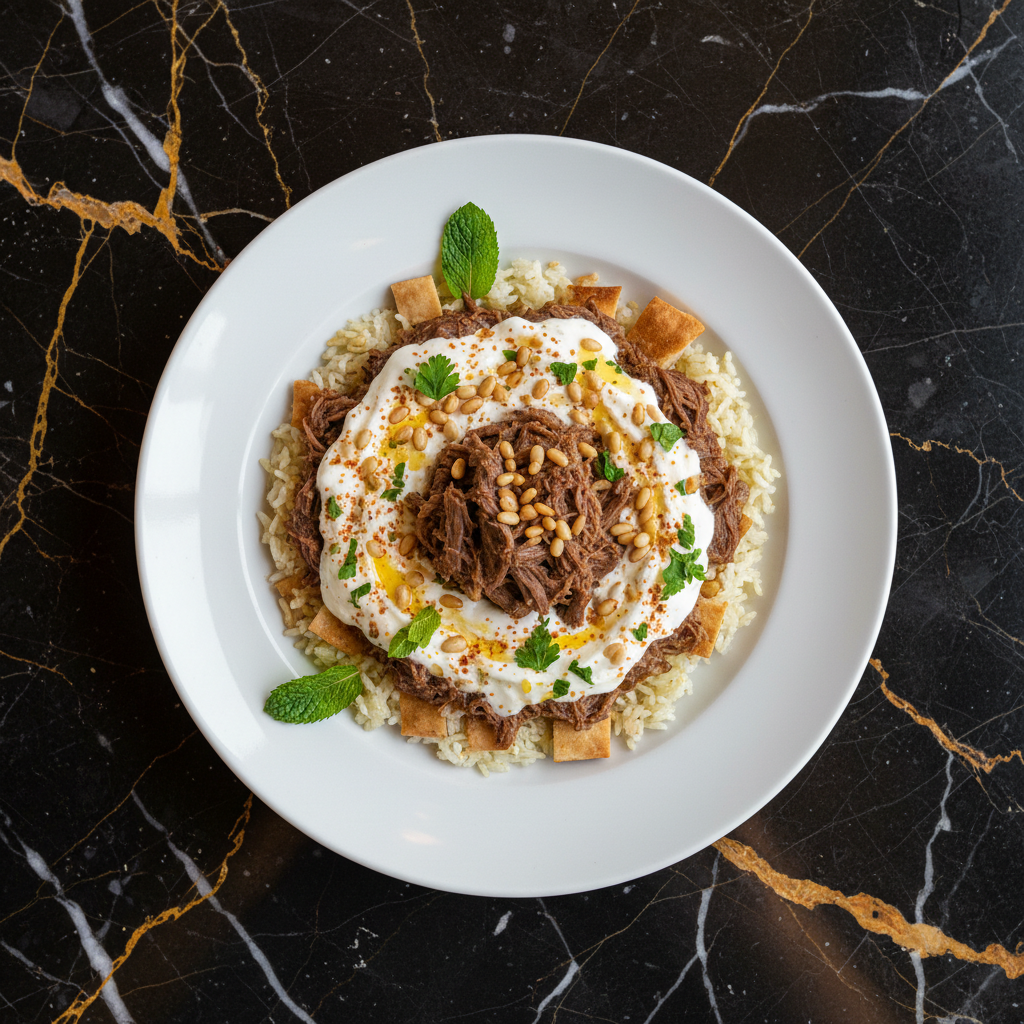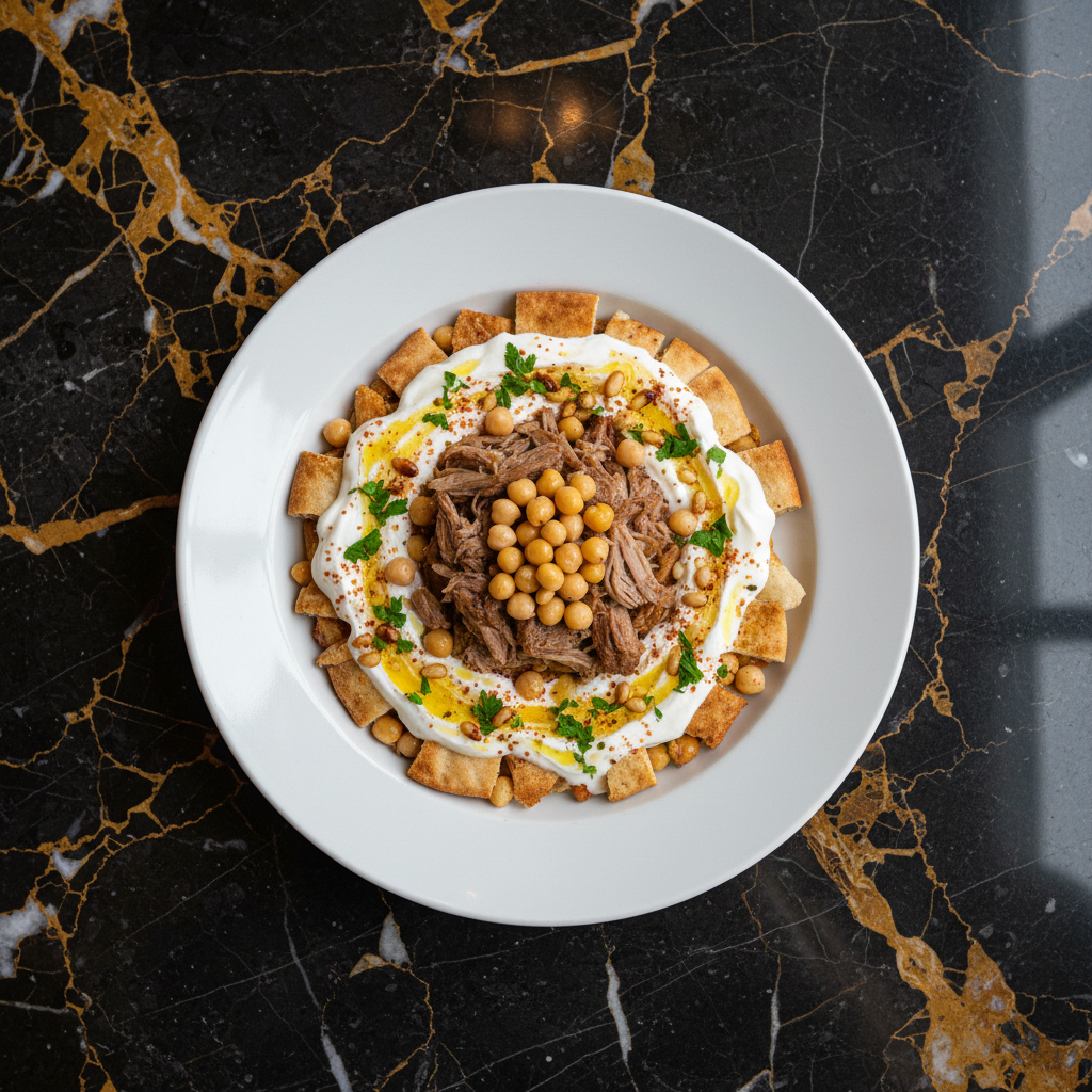 A traditional Egyptian festive dish, Fatta features layers of toasted bread, fluffy rice, and tender beef, all brought together with a tangy garlic-vinegar sauce. It's a celebratory meal often prepared for Eid al-Adha.