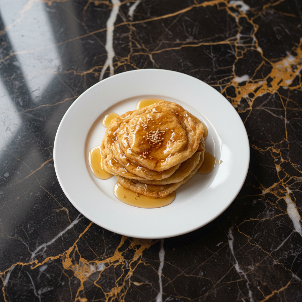 A wonderfully flaky, buttery, and layered flatbread, traditionally served for breakfast or special occasions. It's often enjoyed with a drizzle of honey and scrambled eggs.