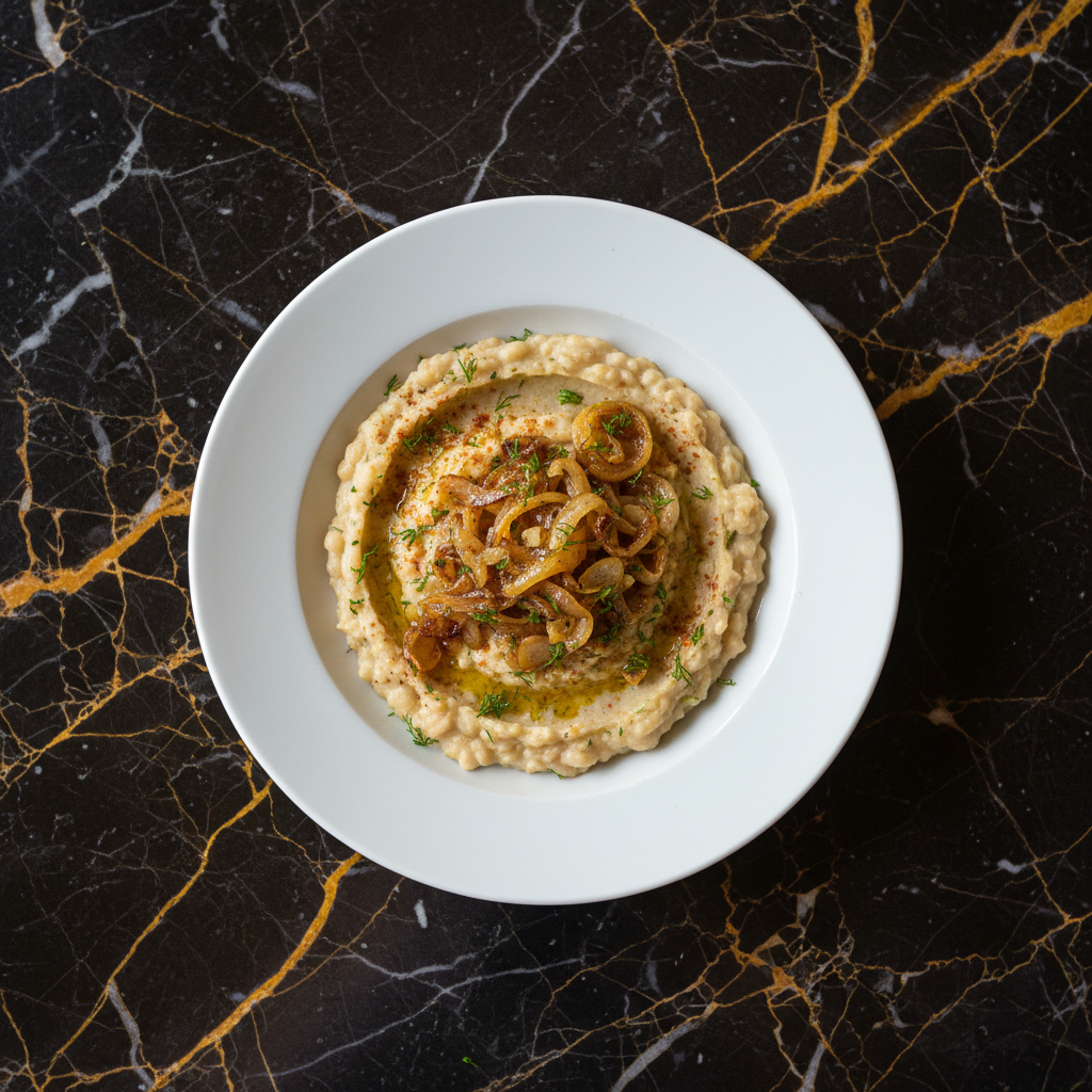 Fasole Frecatฤ is a traditional Romanian dish of creamy mashed white beans, often seasoned with garlic and topped with caramelized onions. It's a hearty and flavorful dish, typically served as a spread or a side dish, and is particularly popular during fasting periods or as a comforting winter meal.