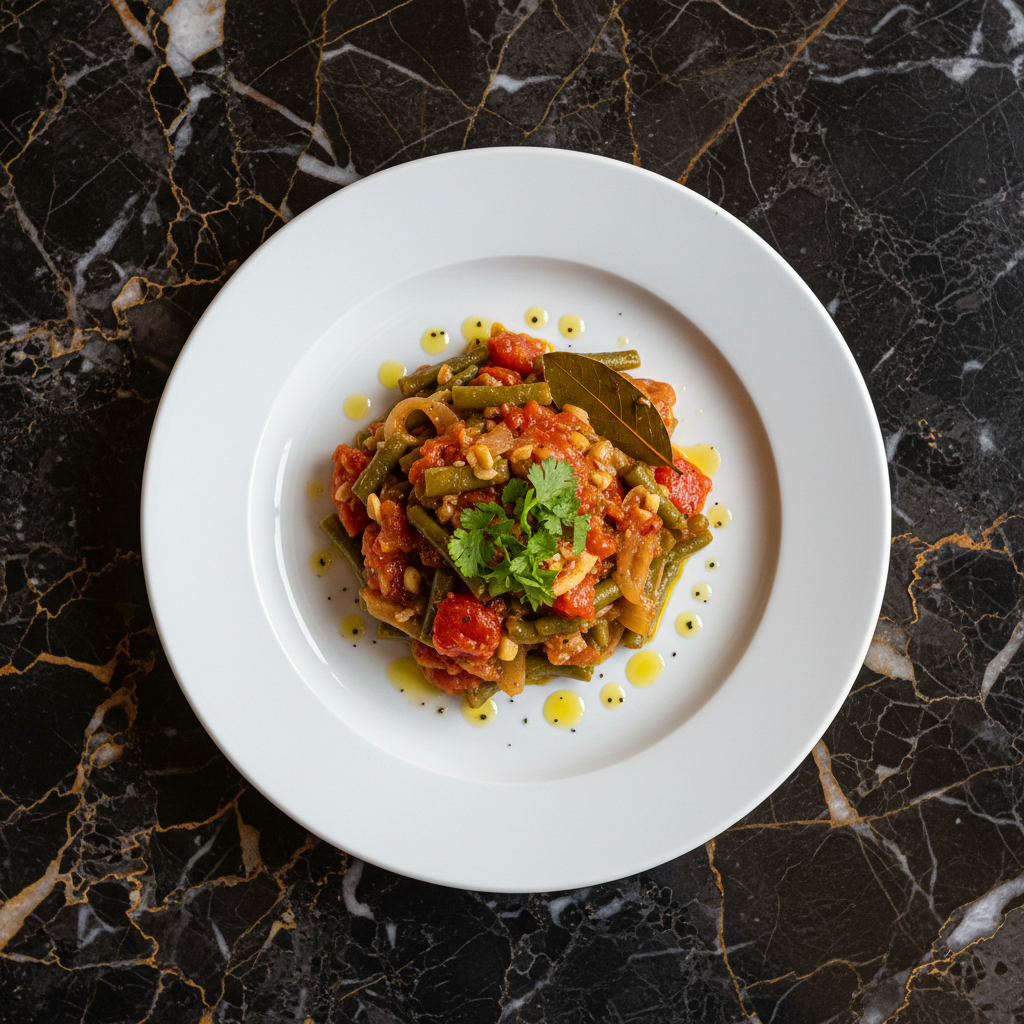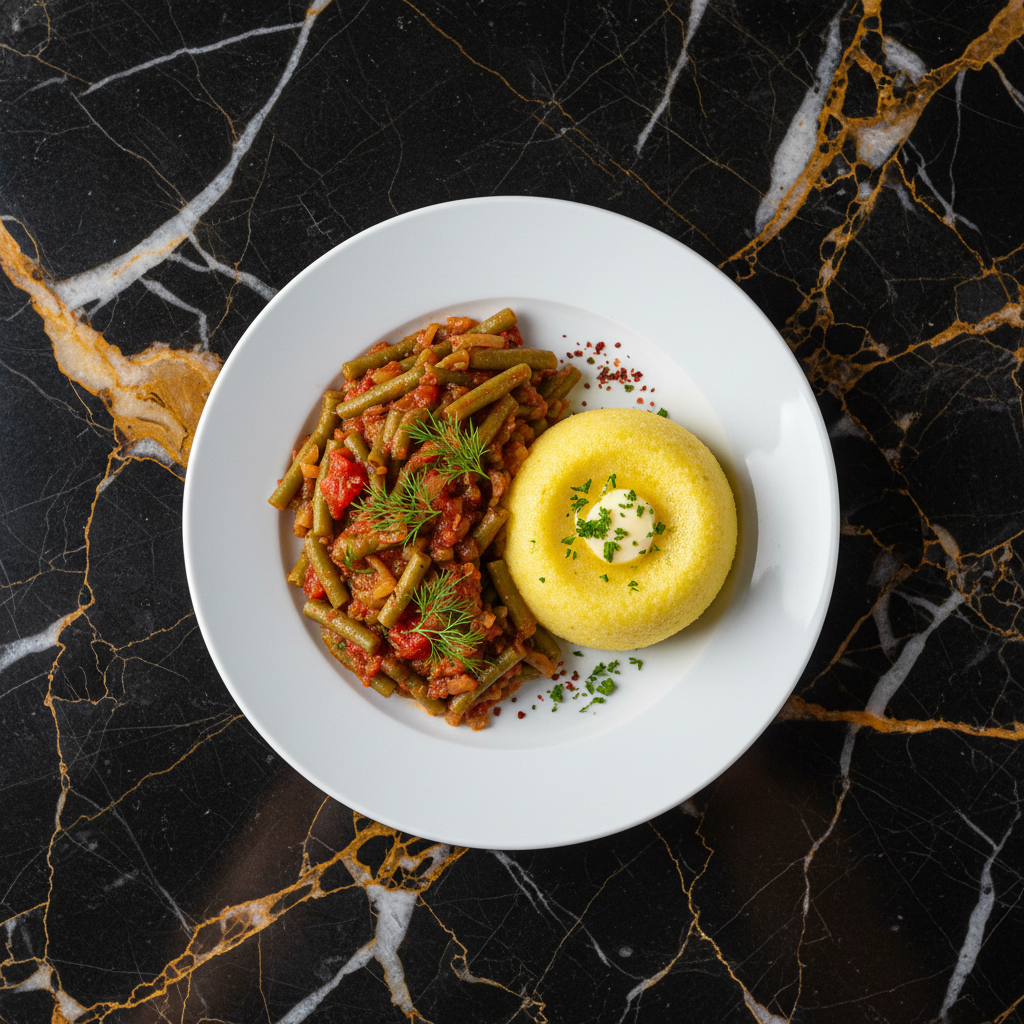 A hearty and flavorful vegetarian stew made with green beans, tomatoes, onions, and herbs, traditionally served with mฤmฤligฤ (cornmeal porridge). This dish highlights the use of fresh vegetables and simple, wholesome ingredients common in Moldovan home cooking.