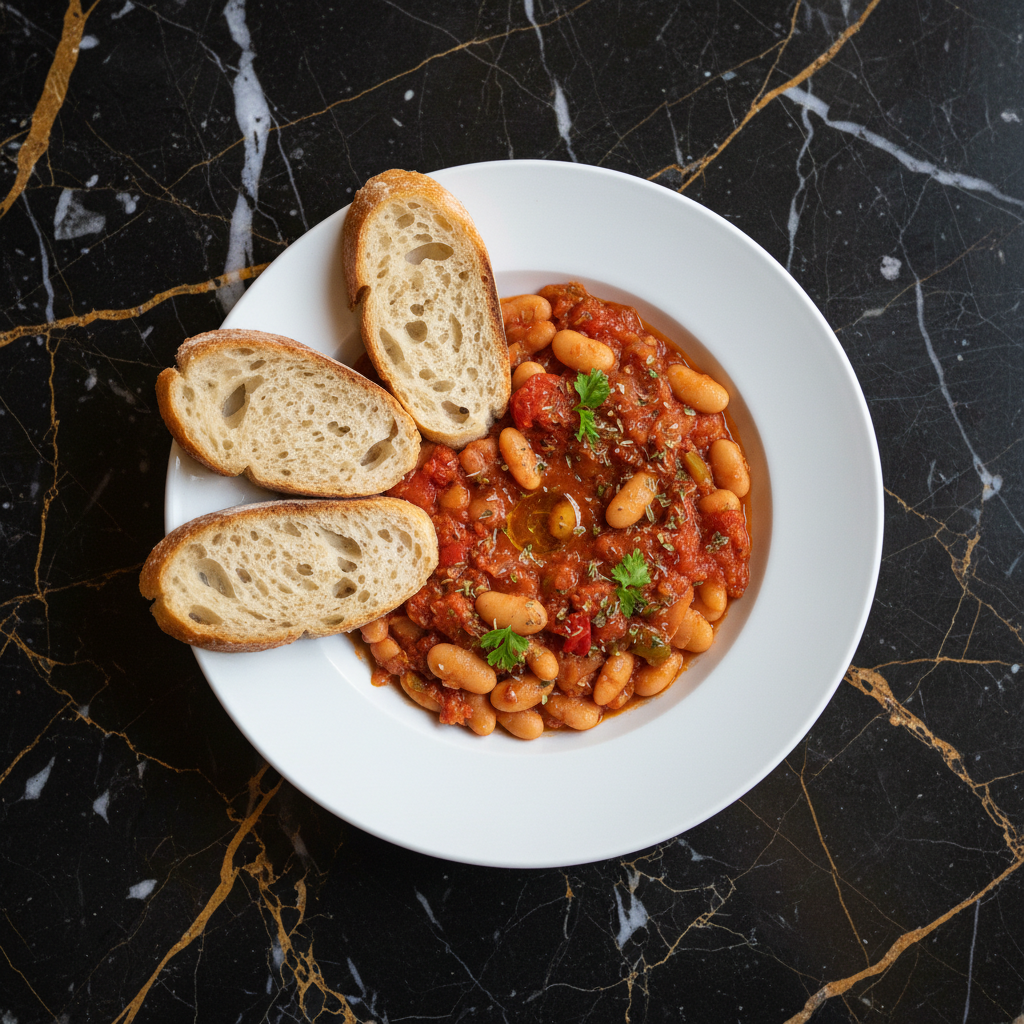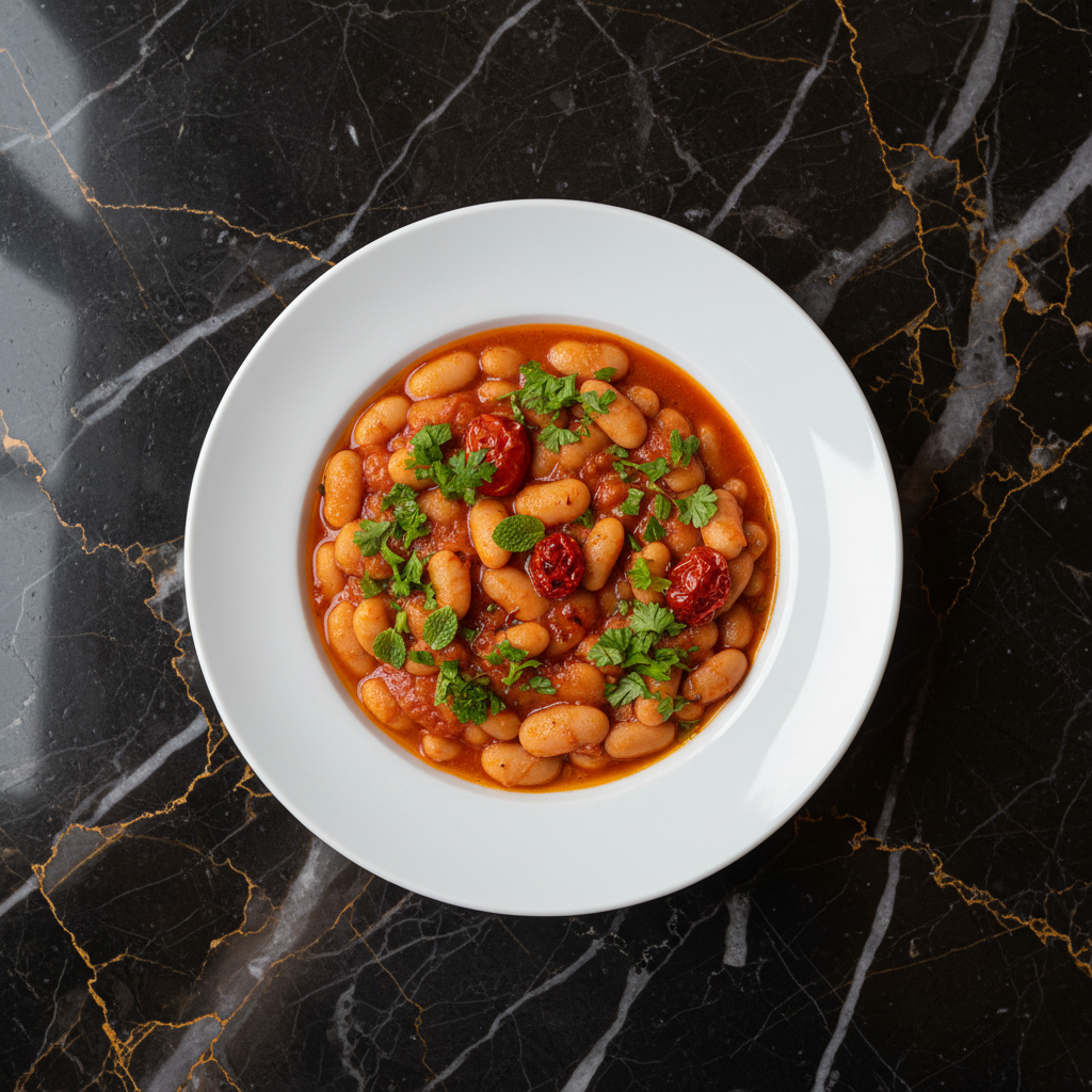 A comforting and aromatic white bean stew simmered in a rich tomato sauce infused with fresh herbs like mint and parsley. This dish is a staple in Albanian homes, offering a flavorful vegetarian option that is both simple and satisfying.