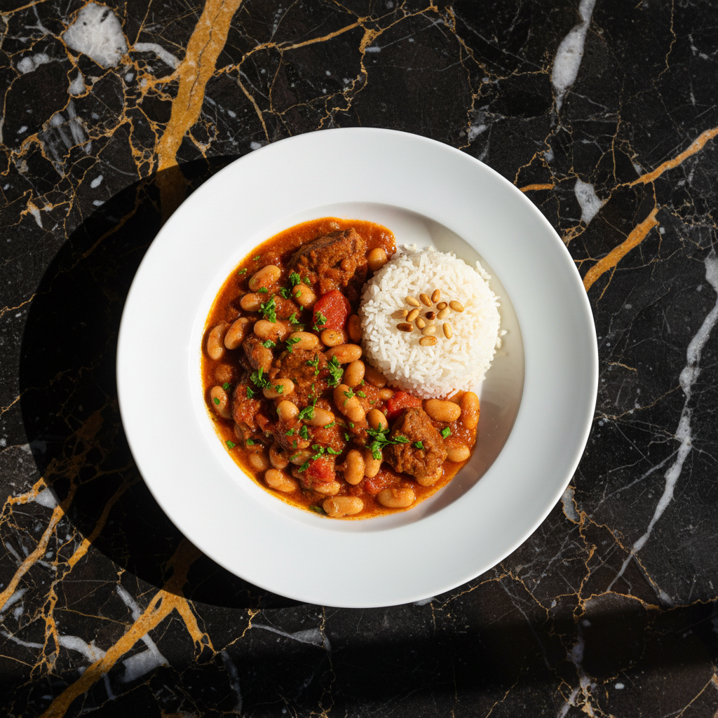 A hearty and comforting Lebanese stew featuring tender lamb and soft white beans simmered in a rich tomato sauce, infused with the warm aroma of cinnamon. Perfect for a chilly evening.