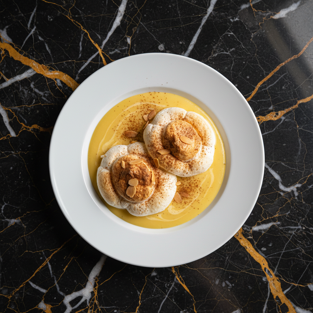 A classic Portuguese dessert featuring delicate, cloud-like meringue 'islands' gently poached and served afloat in a rich, creamy vanilla custard. Often dusted with cinnamon for a warm, aromatic finish.
