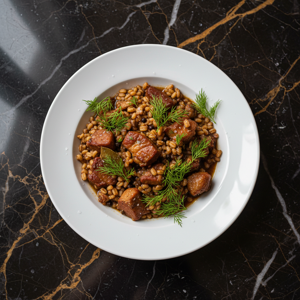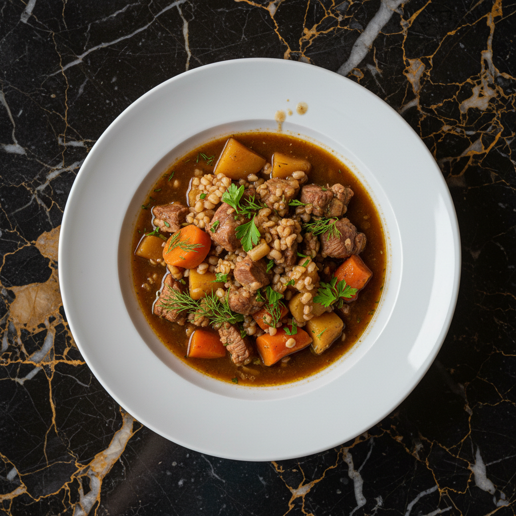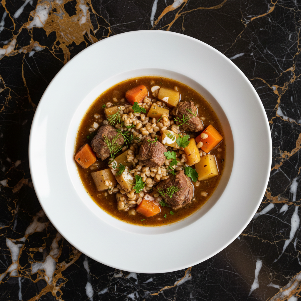 A hearty and comforting stew featuring tender pork, chewy pearl barley, and a medley of root vegetables, simmered in a savory broth. This dish embodies the rustic, warming flavors of Finnish home cooking.