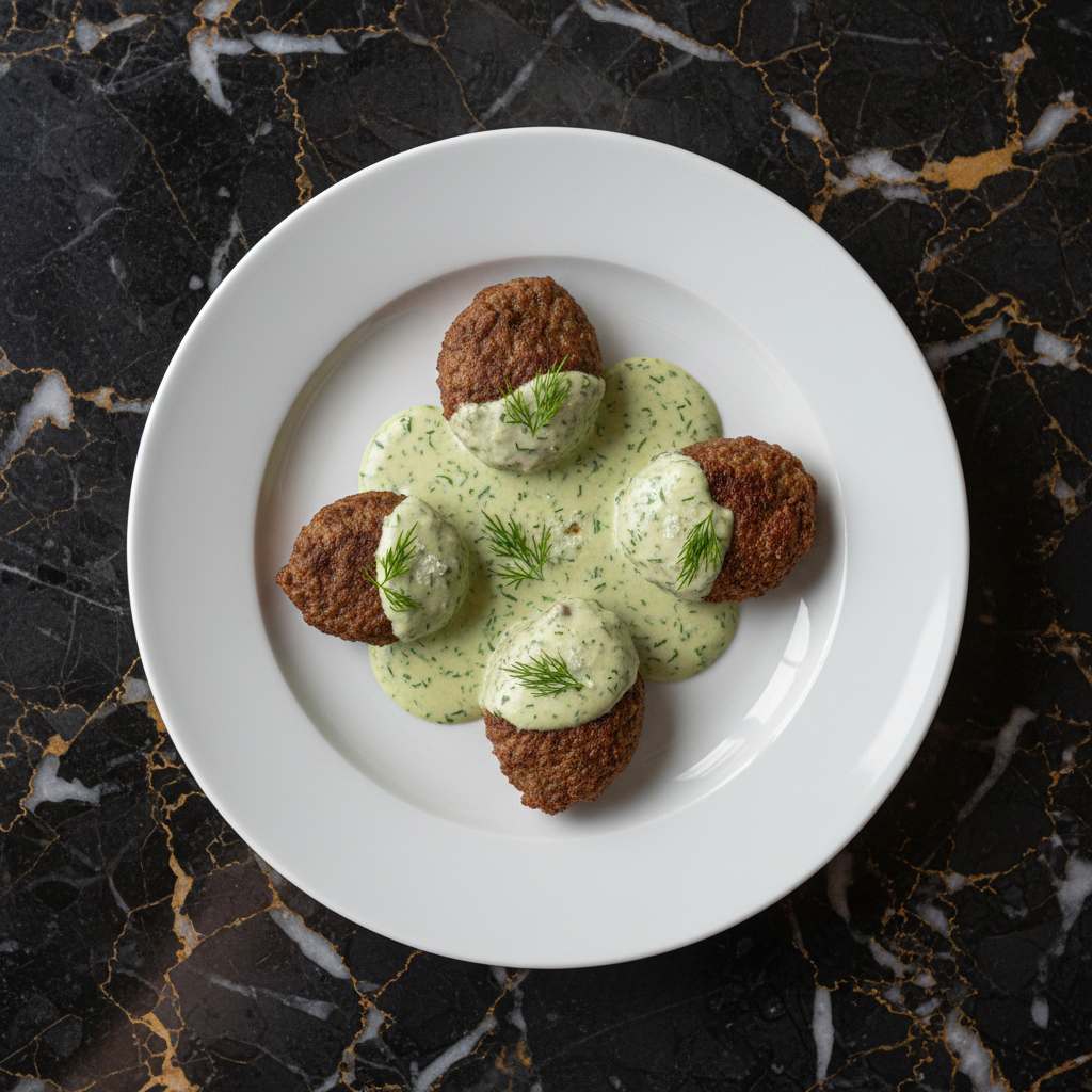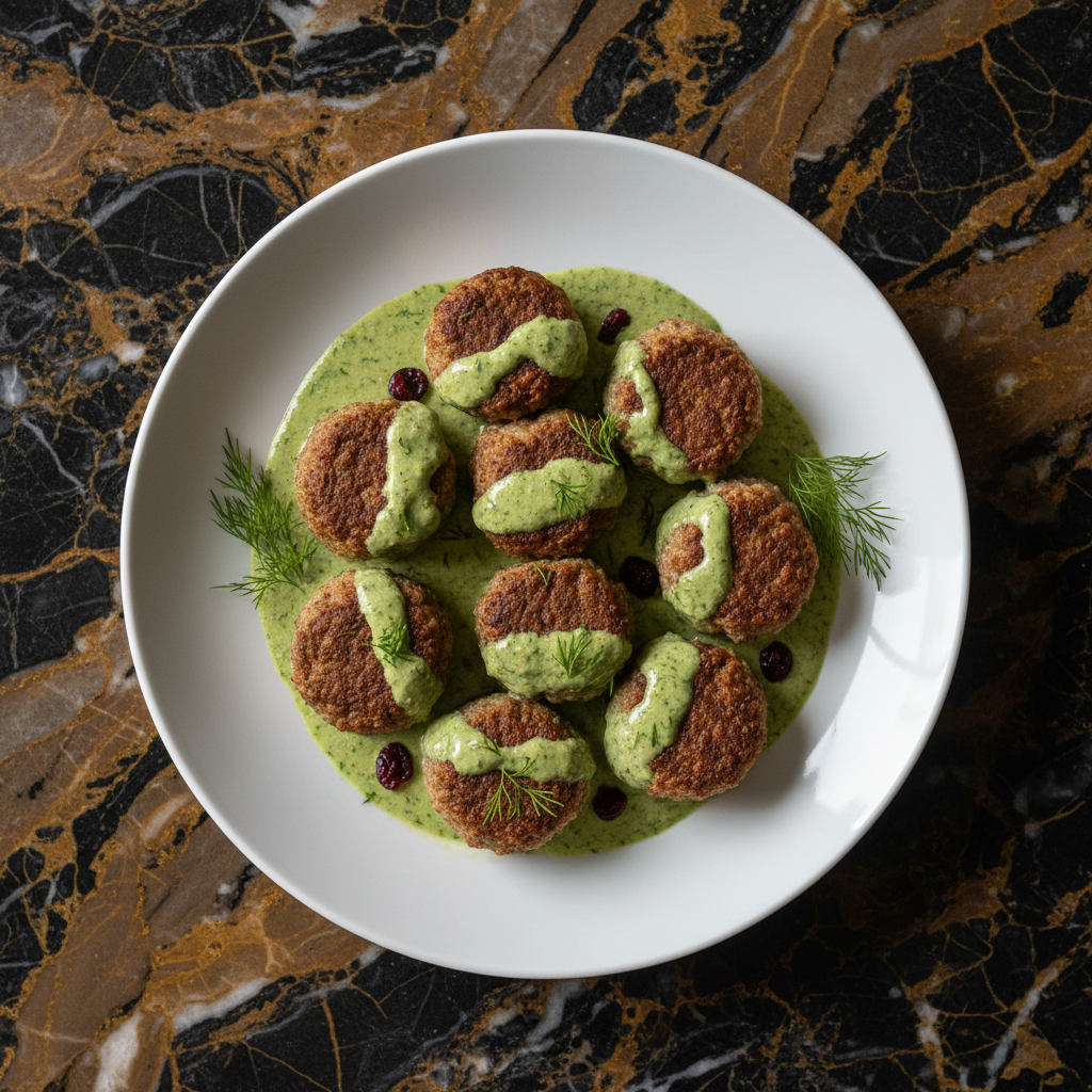 Savory patties made from ground pork and cooked barley, seasoned with traditional Finnish herbs and spices. Served with a refreshing dill and sour cream sauce, these patties are a comforting and flavorful dish, often enjoyed as a main course with mashed potatoes or root vegetables.