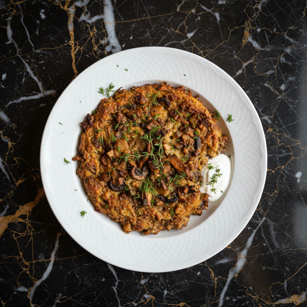 A savory and hearty casserole featuring a base of cooked rye, layered with sautรฉed mushrooms, onions, and herbs, all bound together with a creamy sauce and baked until golden brown. This dish offers a comforting blend of earthy mushroom flavors and the rustic texture of rye.