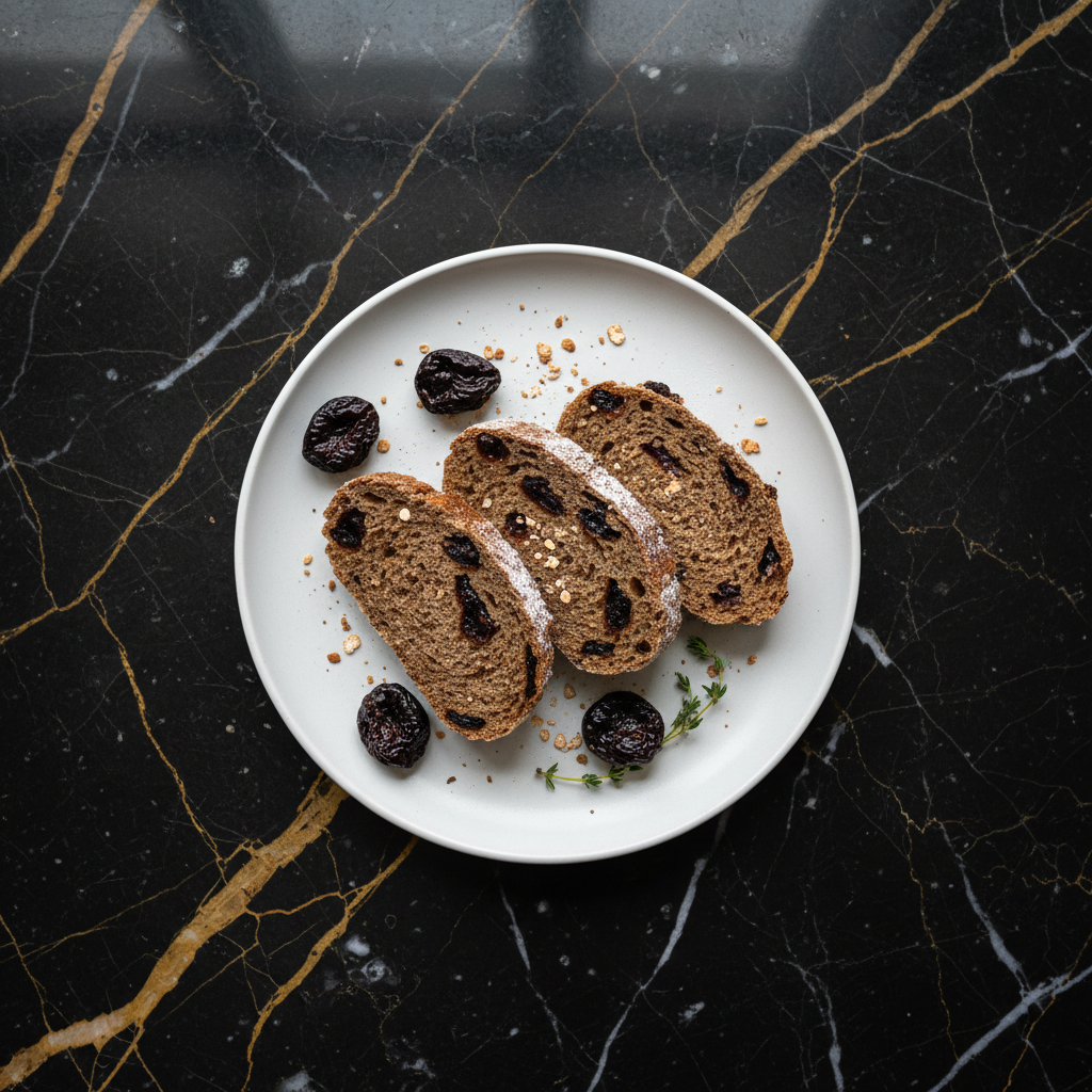 A dense, moist, and slightly sweet rye bread, enriched with the deep, fruity flavor of prunes. This bread is a testament to traditional Finnish baking, where rye and dried fruits are often combined for a hearty and satisfying loaf.
