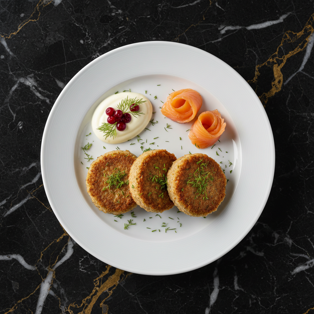Savory patties made with flaked salmon, rye flour, and dill, pan-fried until golden brown. A delicious way to use leftover salmon or canned salmon, offering a taste of Finnish coastal cuisine.