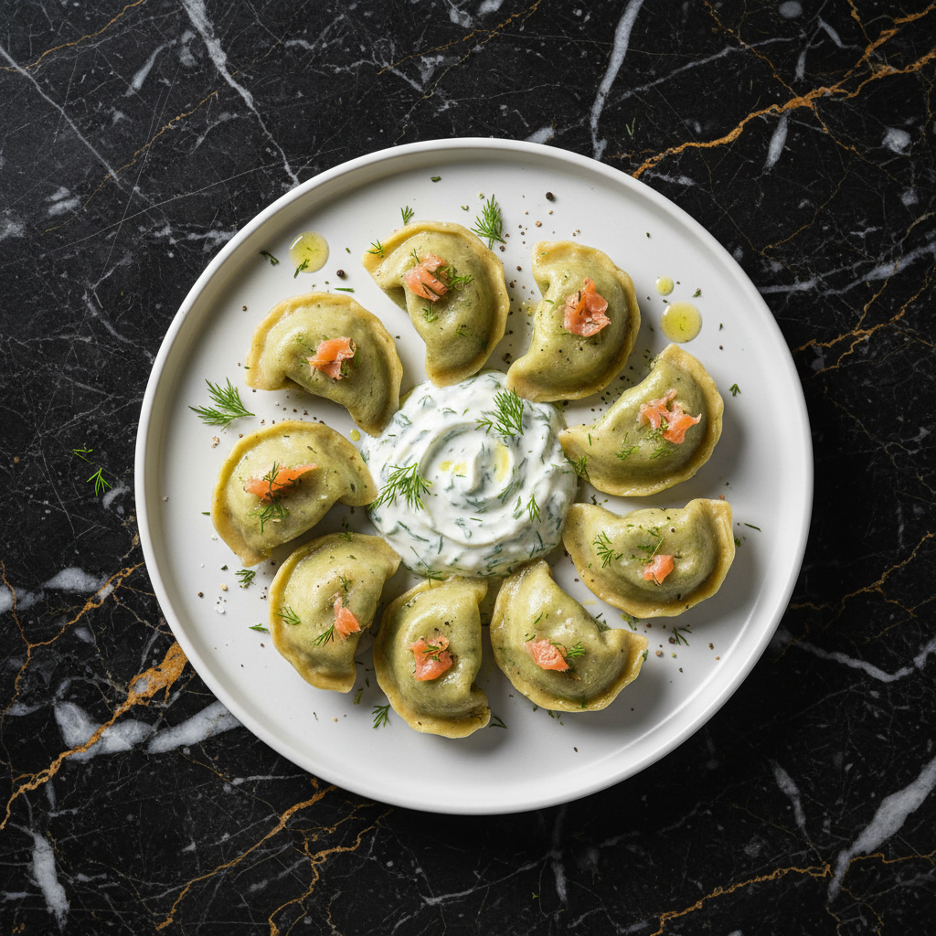 Tender dumplings filled with flaky salmon and fresh dill, served with a tangy sour cream and dill sauce. A delightful and comforting Finnish classic.