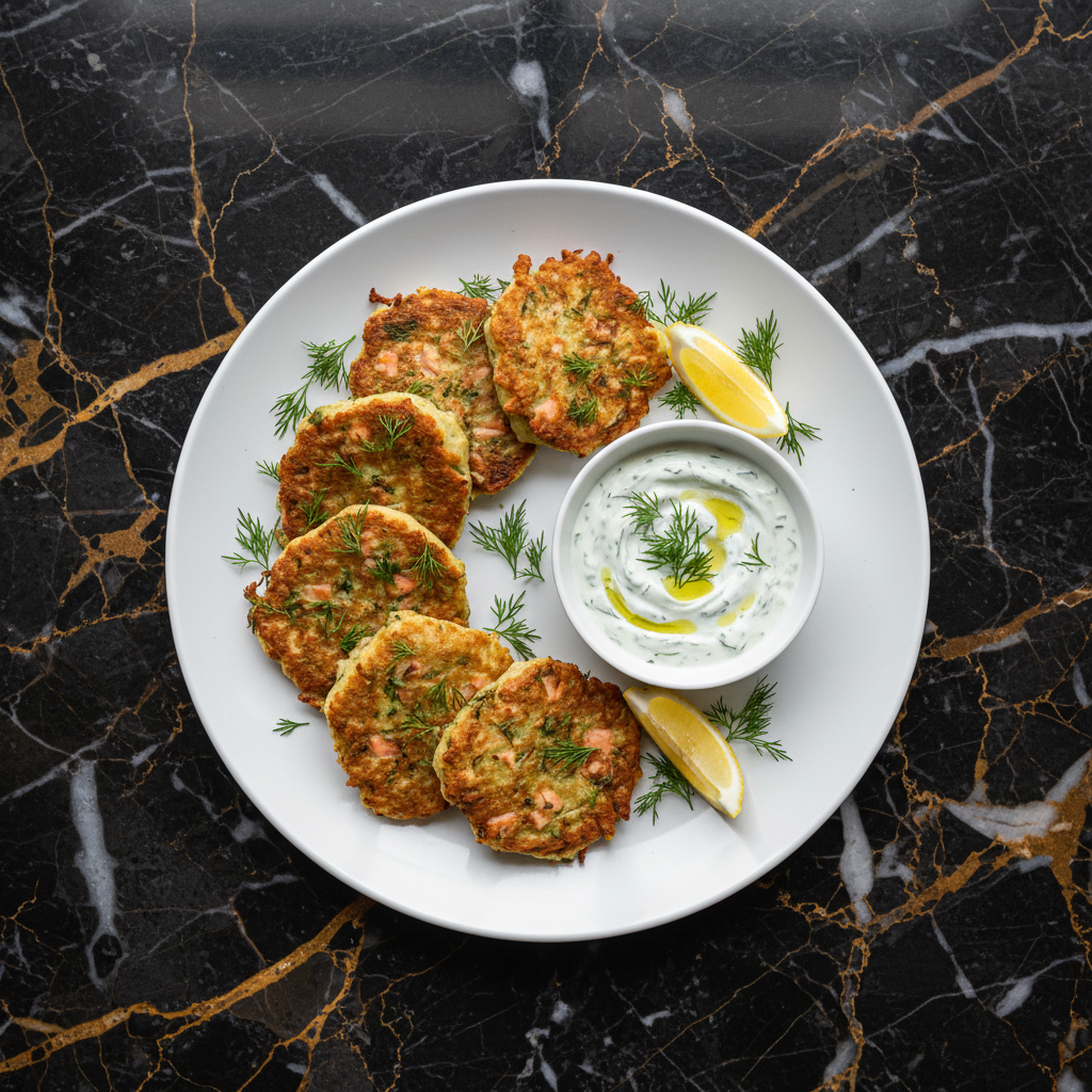 Crispy on the outside and tender on the inside, these salmon and dill fritters are a delightful way to enjoy fresh salmon. Paired with a refreshing sour cream and dill dip, they make for a perfect appetizer or light meal.