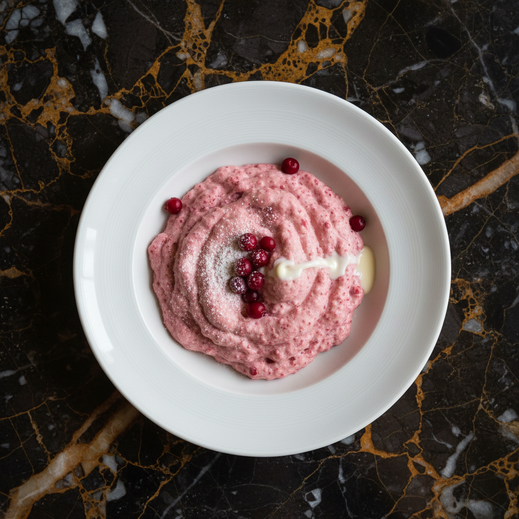 Vispipuuro, meaning 'whipped porridge,' is a classic Finnish dessert or snack made from berries, typically lingonberries, cooked into a smooth, tart porridge and then whipped to a light, airy consistency. It's a refreshing and vibrant dish, often served with a splash of milk or cream.