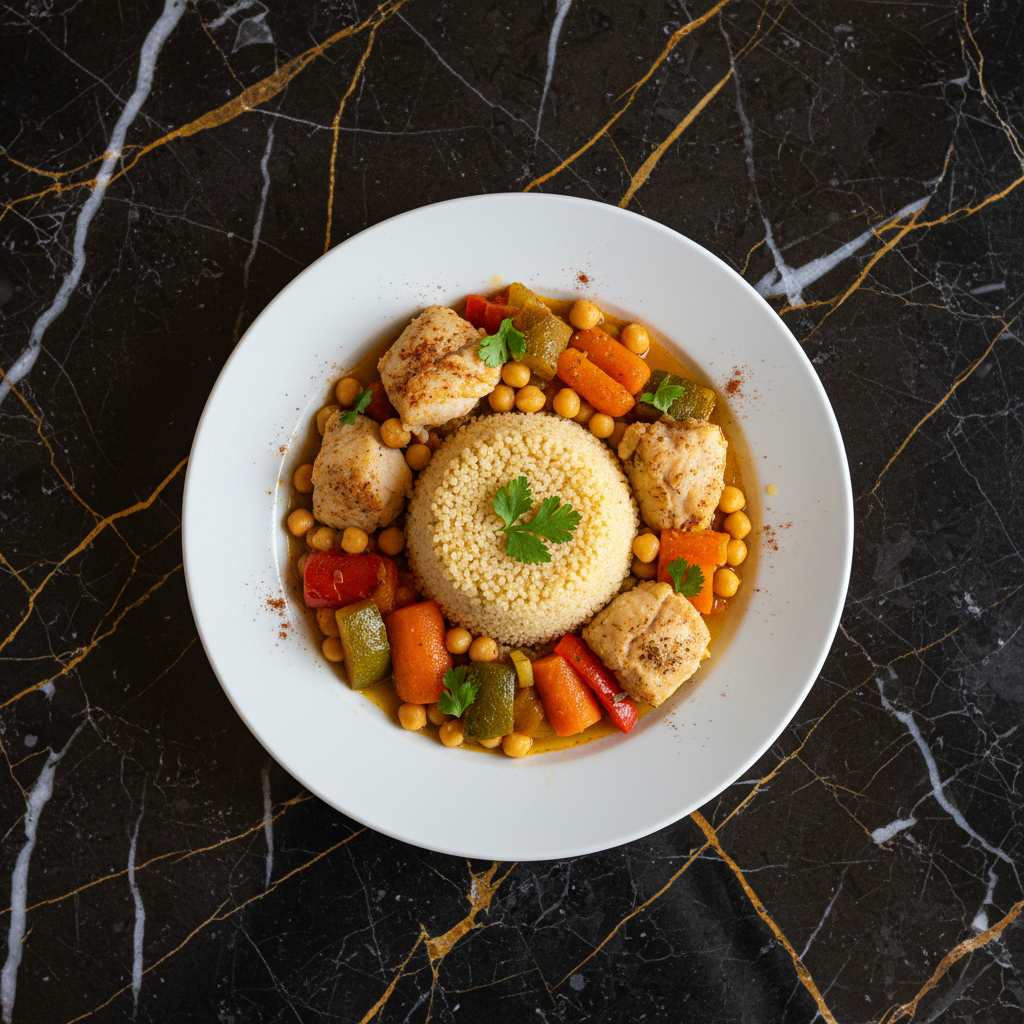 A flavorful and aromatic couscous dish featuring tender fish, a medley of vegetables, and a blend of Moroccan-inspired spices. This recipe offers a lighter alternative to traditional rice-based dishes.